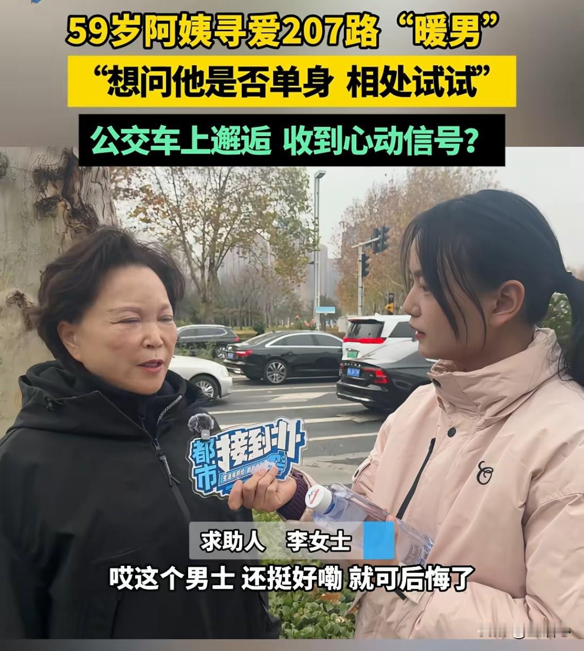 59岁女人为爱疯狂! 缘起一次问路经历,一位年龄相仿、成熟稳重的男士正好同她坐同一辆车,并且在车上因为汽车晃动的原因扶了她一把。 事后,这位女士就就此沦陷不能自拔,并致电都市接到办记者帮她寻爱[笑哭],她想找到那位稳重而又魅力十足的男性,并想同他谈一场恋爱[捂脸][捂脸][捂脸]。 简直太可笑了,60岁的年龄的男人,难道还没有成家吗?居然想同人家谈恋爱,就算年轻人也没她那个胆儿。[吐血][吐血][吐血]