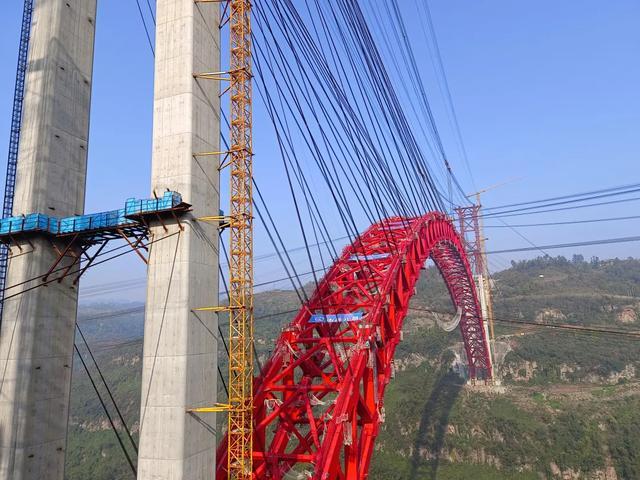 中铁八局项目技术负责人黄健介绍,作为全线重难点控制性工程,该大桥以“超大跨径、大吨位吊装、高精度合龙”等技术特点,成为国内山区大跨度钢桁拱桥建设的典型代表。