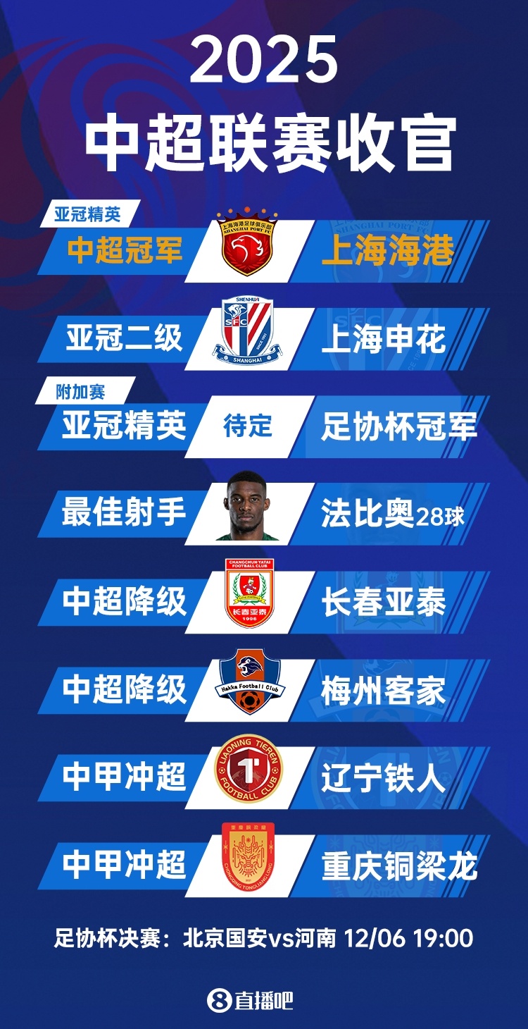 12月6日足协杯决赛国安vs河南,胜者晋级下赛季的亚冠精英联赛附加赛。