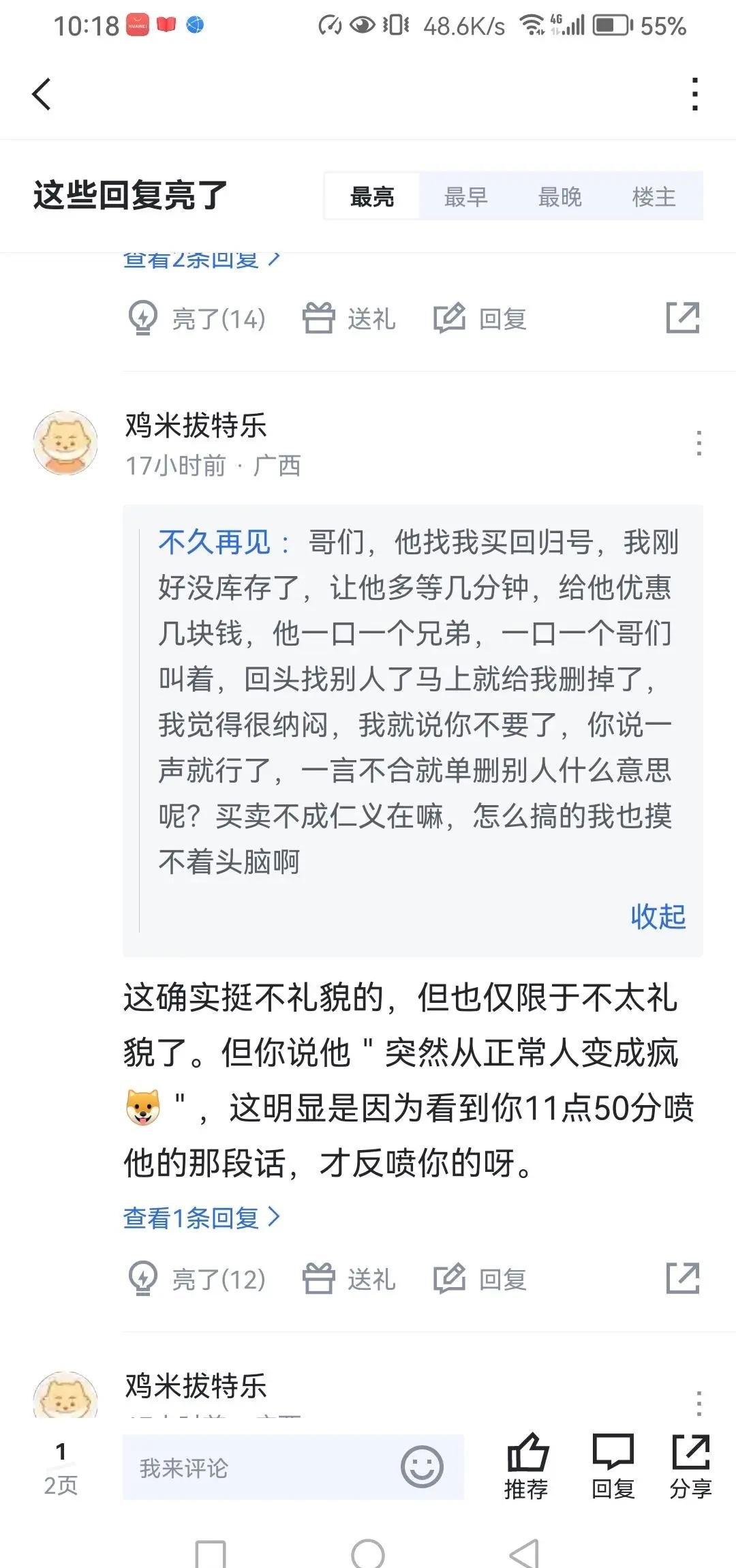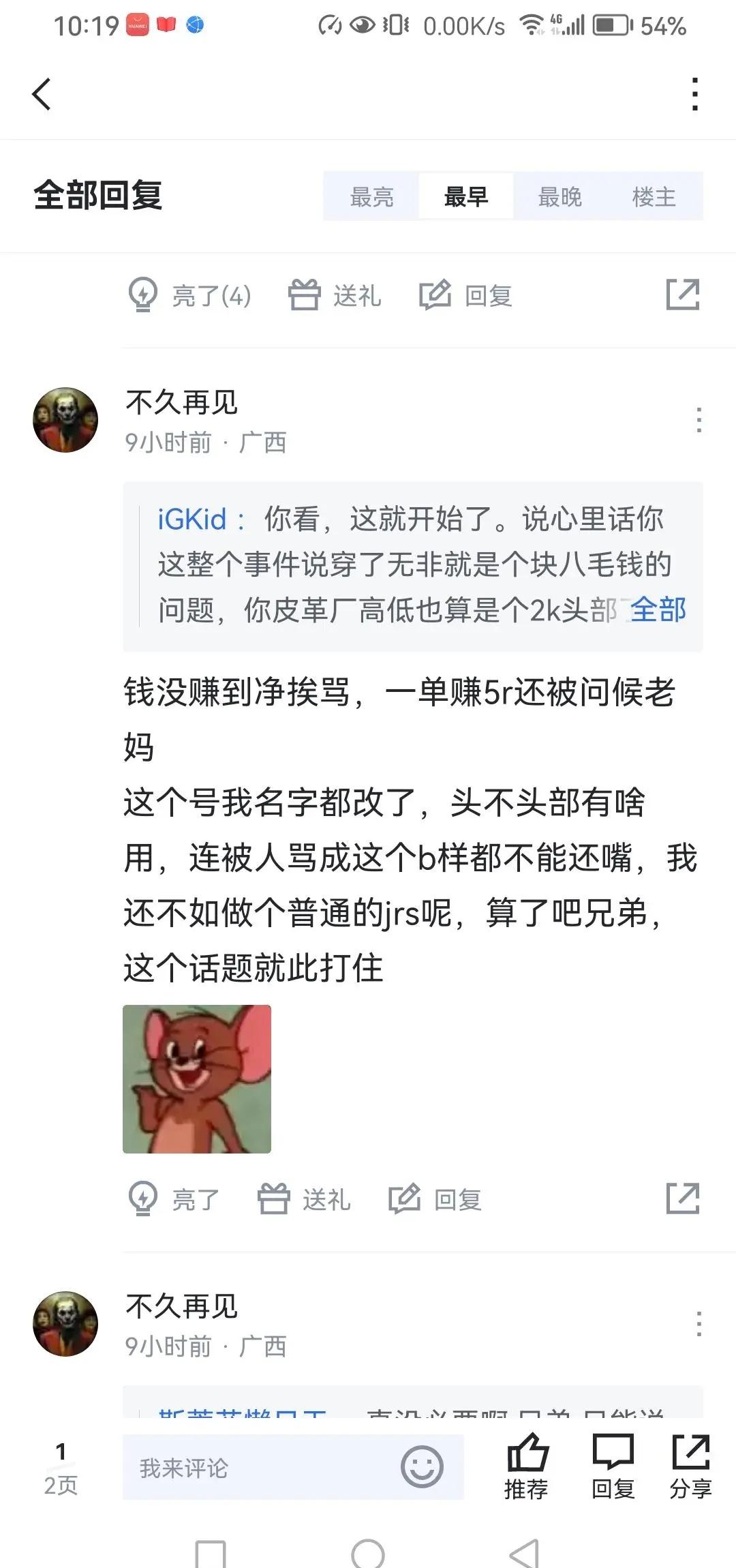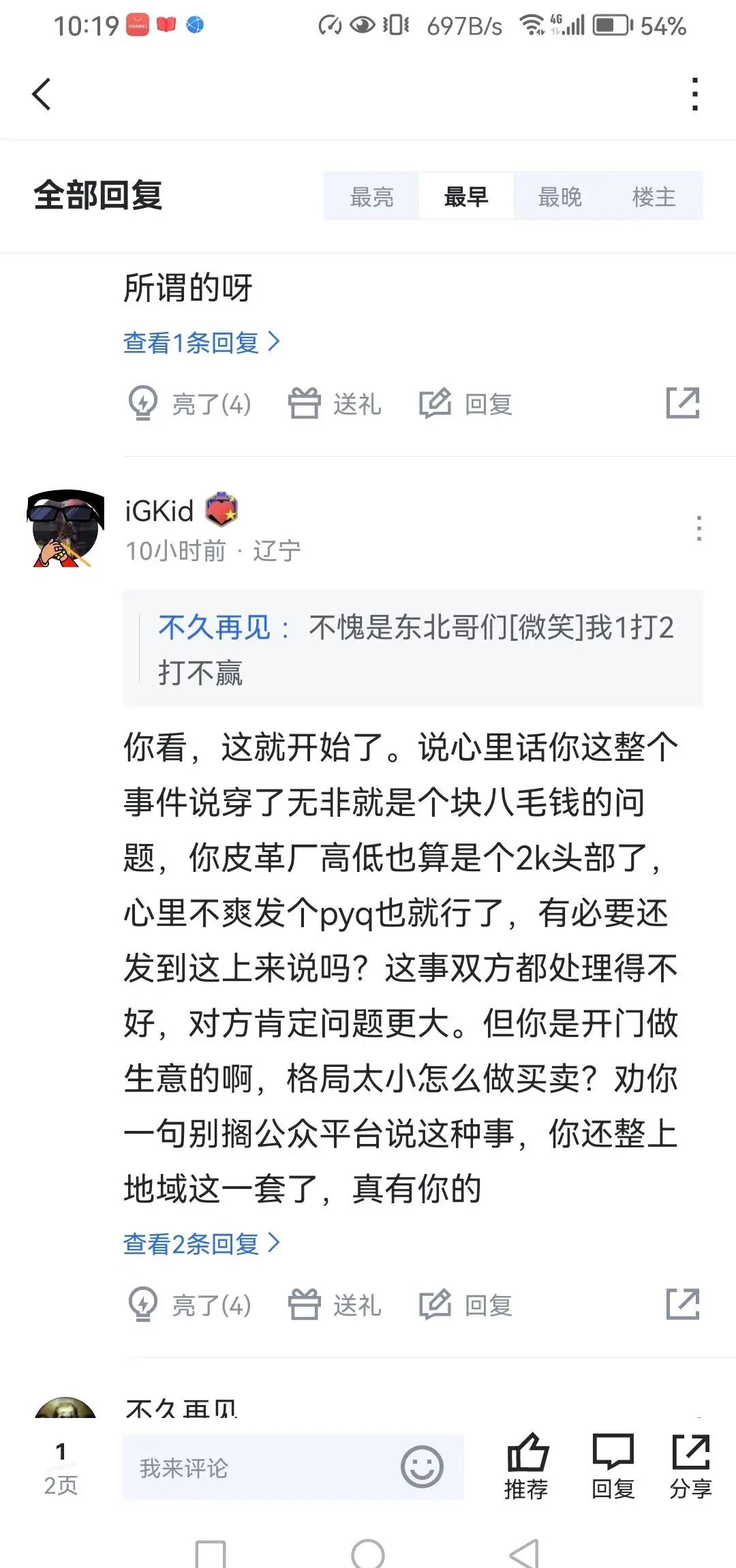皮革厂还能不就再见吗?记录版主带地域黑节奏的帖子一则(原贴他已删除) 挂人不评价了,你们两家买卖的问题,可惜没保留到主贴内容