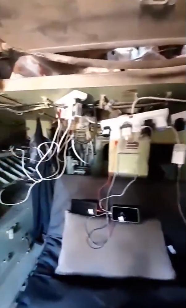 在加沙持续停电期间,一巴勒斯坦居民们将一辆废弃的以色列军车改造成了一个临时手机充电站。里面还可以睡觉。写上广告: ”手机、发夹、电池、适用于热门手机的充电夹”