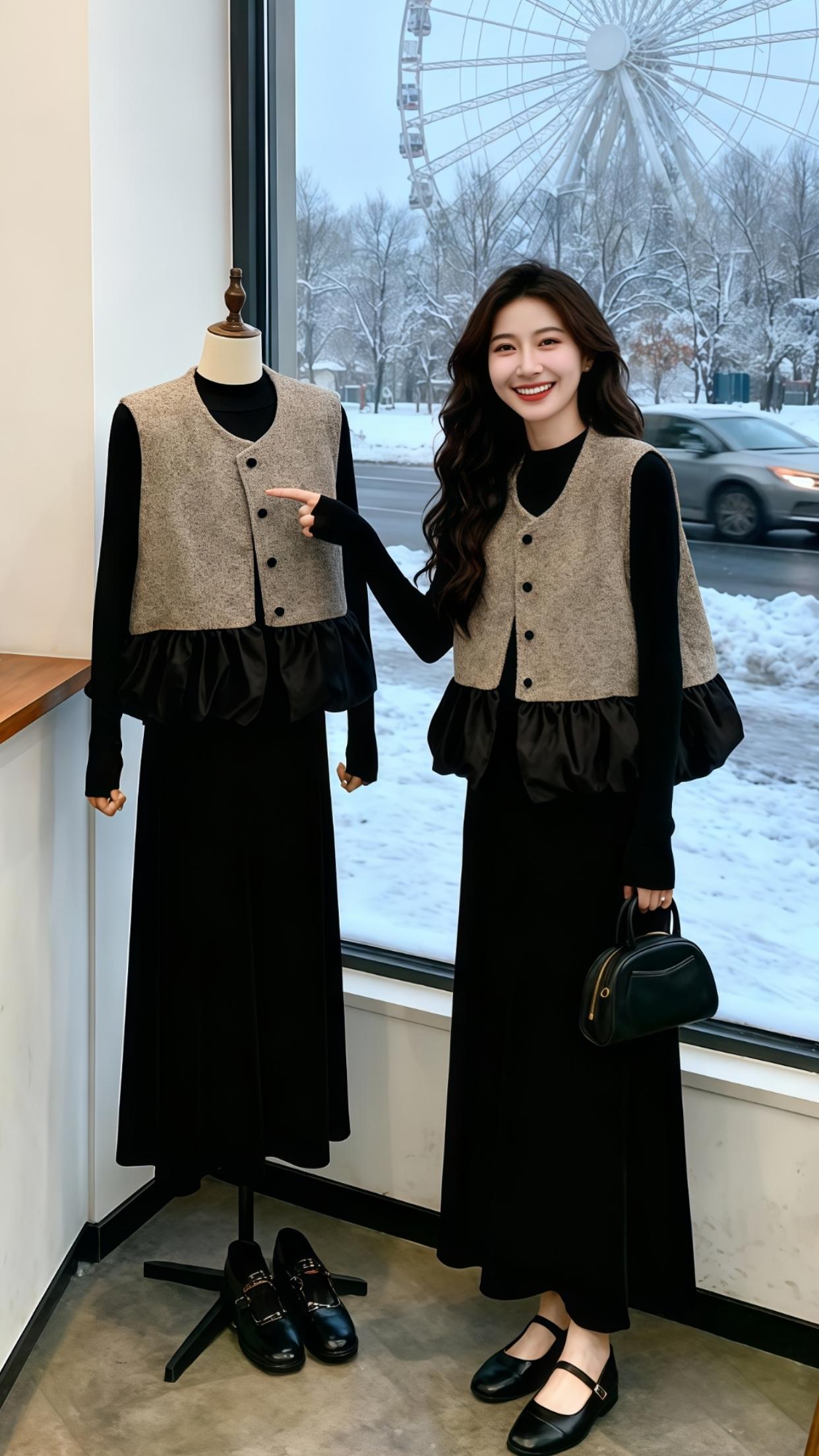 秋日穿搭指南棕色高领毛衣+长裙温暖又时尚