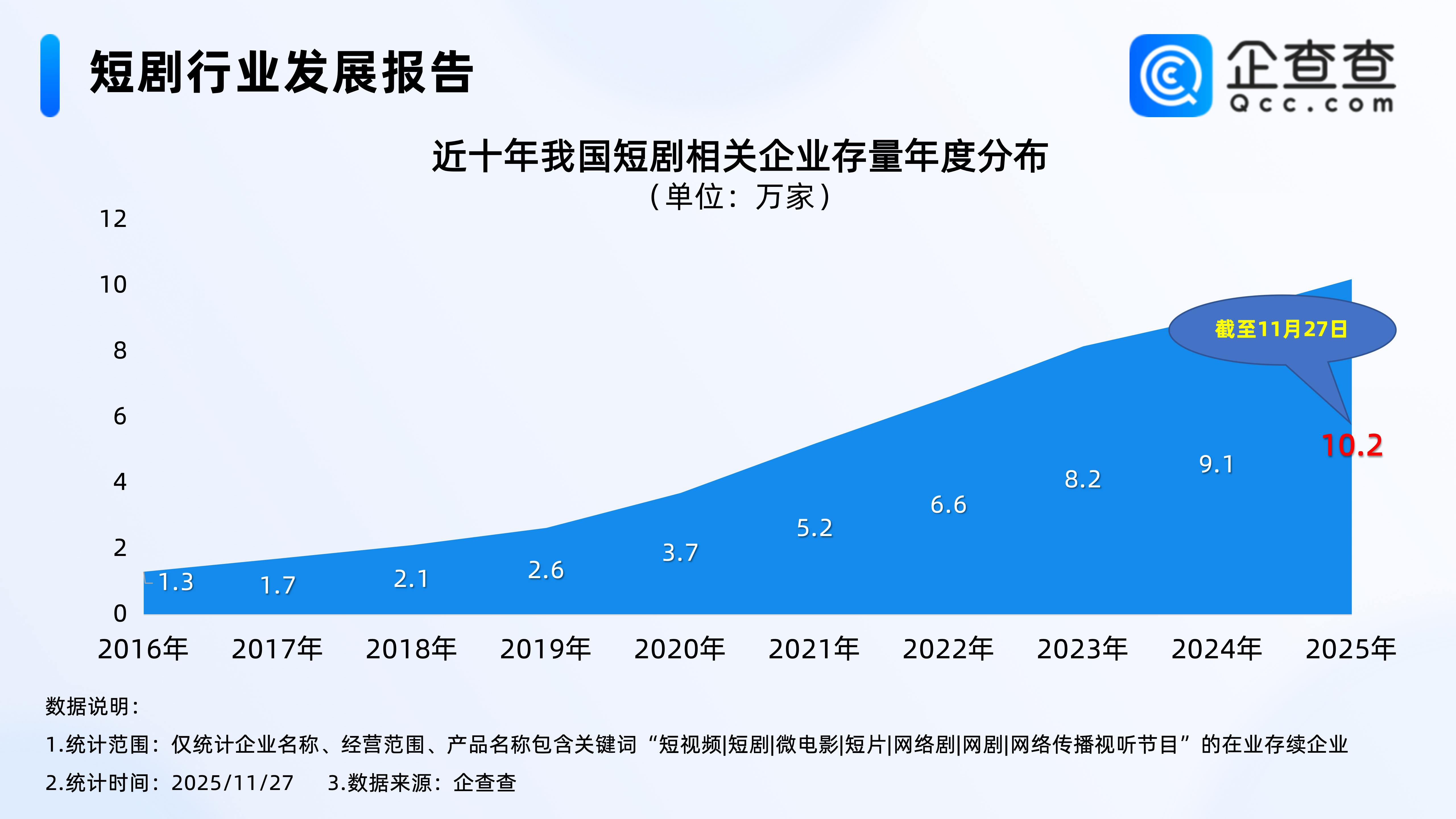 3.从企业存量来看:短剧相关企业存量已超10万家
