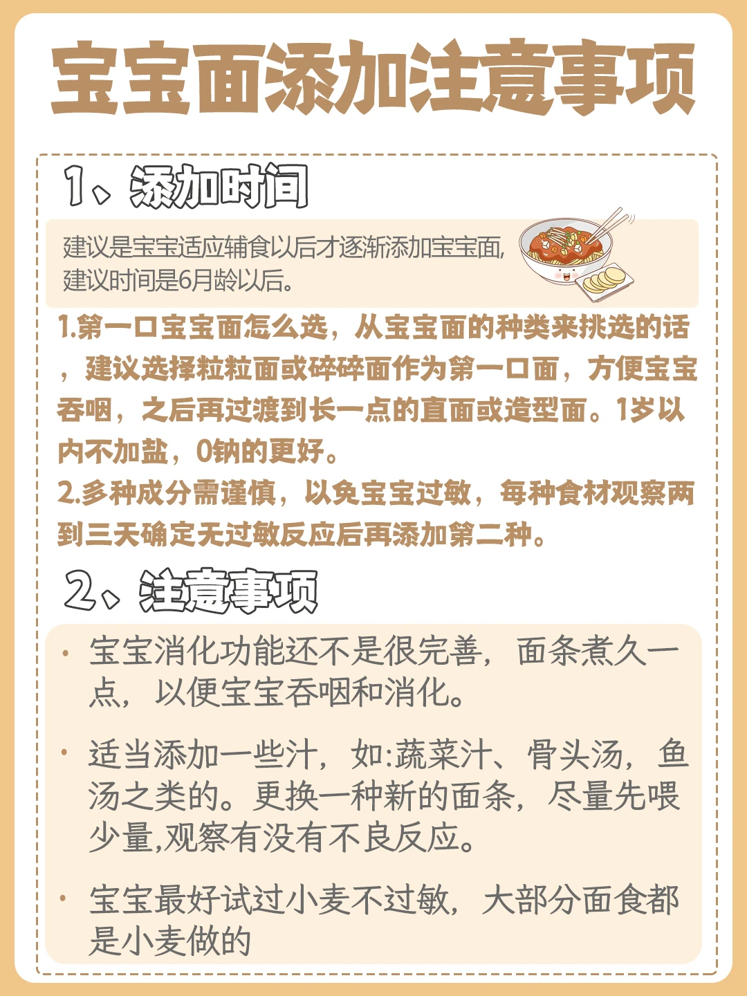 建议是宝宝适应辅食以后才逐渐添加宝宝面,建议时间是6月龄以后