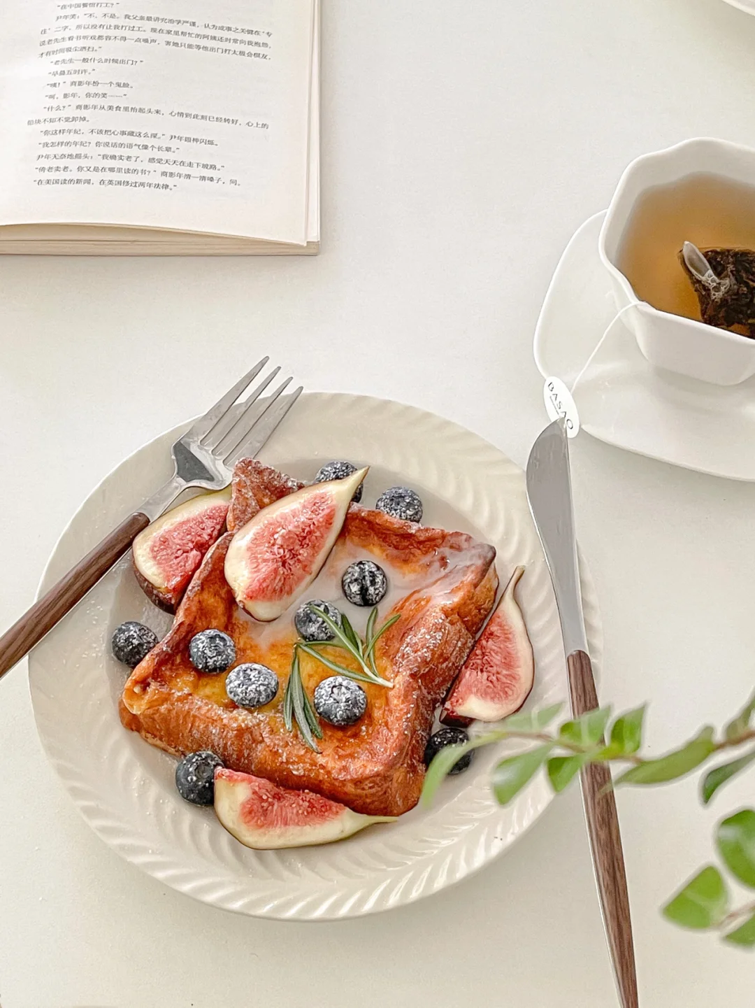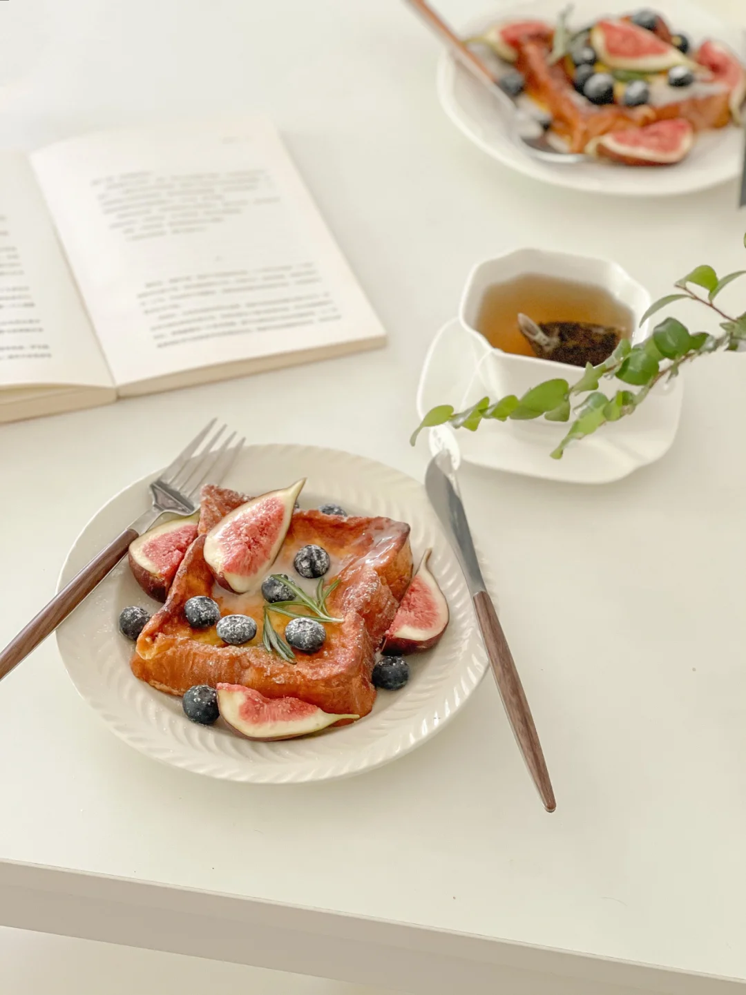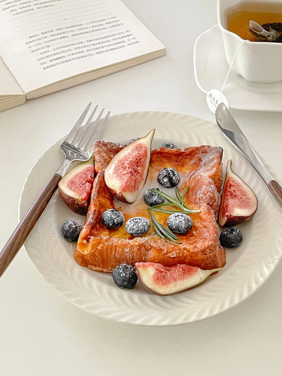5.23 brunch|果然光线就是照片的灵魂[大笑R] 今天的照片每一张都喜欢~ -单枞茶包 无花果 蓝莓 吐司 💖 📝快手简约教程 准备厚吐司, 2颗鸡蛋和150ml牛奶混合(我这里用量是2个吐司) 把吐司放入蛋液里浸泡,每一面都均匀沾上蛋液 烤箱预热,盘底涂上黄油 把吐司放到烤箱里 200度 15min⏰ 看上色程度调节哈~ 拿出后装饰,撒上糖粉即可享用 如果不够甜建议🉑️淋上枫糖浆或者蜂蜜 口感更佳~ 希望大家喜欢呀[飞吻R] 周末的快乐仪式感get☑️ 祝大家度过愉快的一天呀~