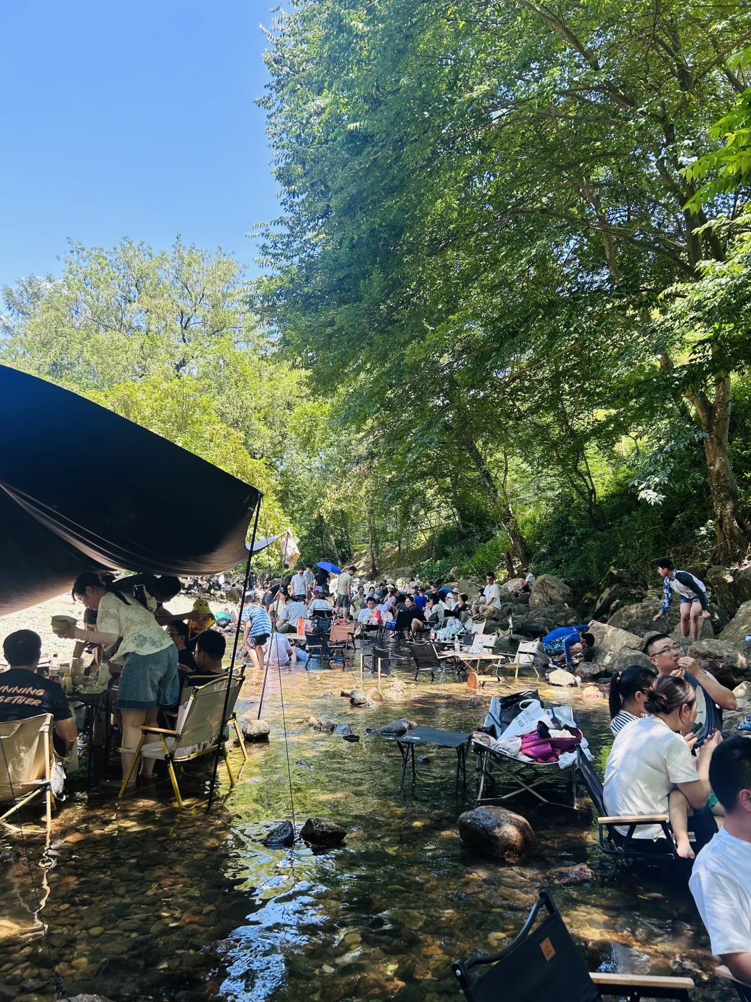 高温天遛娃是很有勇气的,我能想到的只有去玩水了🫠 偶然发现靠近安吉县城的双一村有一处玩水地,水浅有遮荫的地方,果断去了👀🚗 ❤️导航:涧山riverside 🈶地点:安吉县青恋游客集散中心西侧 🌲可遮荫的浅溪 这条溪位于涧山riverside旁边,长度约100米的样子,繁木遮溪,在溪水里玩水就很凉快。 溪水高到脚踝,深处也不及成年人的膝盖,连4岁的幼儿也可以玩水。 原本想溪水里有那么多人玩水,水会浑浊很热,结果很惊喜,水冰冰凉凉的,给身体降温了。 💦溪水边的活动 很多小孩戴着泳圈玩水,也有人打水仗,甚至还有不让人摆着桌子放上美食,把脚泡在水里野餐,很惬意。 如果还是感觉太热,可以走上岸,到旁边的咖啡馆吹空调喝饮料吃美食。 🌈玩水建议 1️⃣自带玩水装备,附近买的有点贵 2️⃣自带换洗衣物,很容易打湿 3️⃣高温天多带饮用水,多喝水 4️⃣准备涂好蚊虫叮咬的药膏,玩水容易被叮咬 5️⃣建议16点后去玩水,人太多了