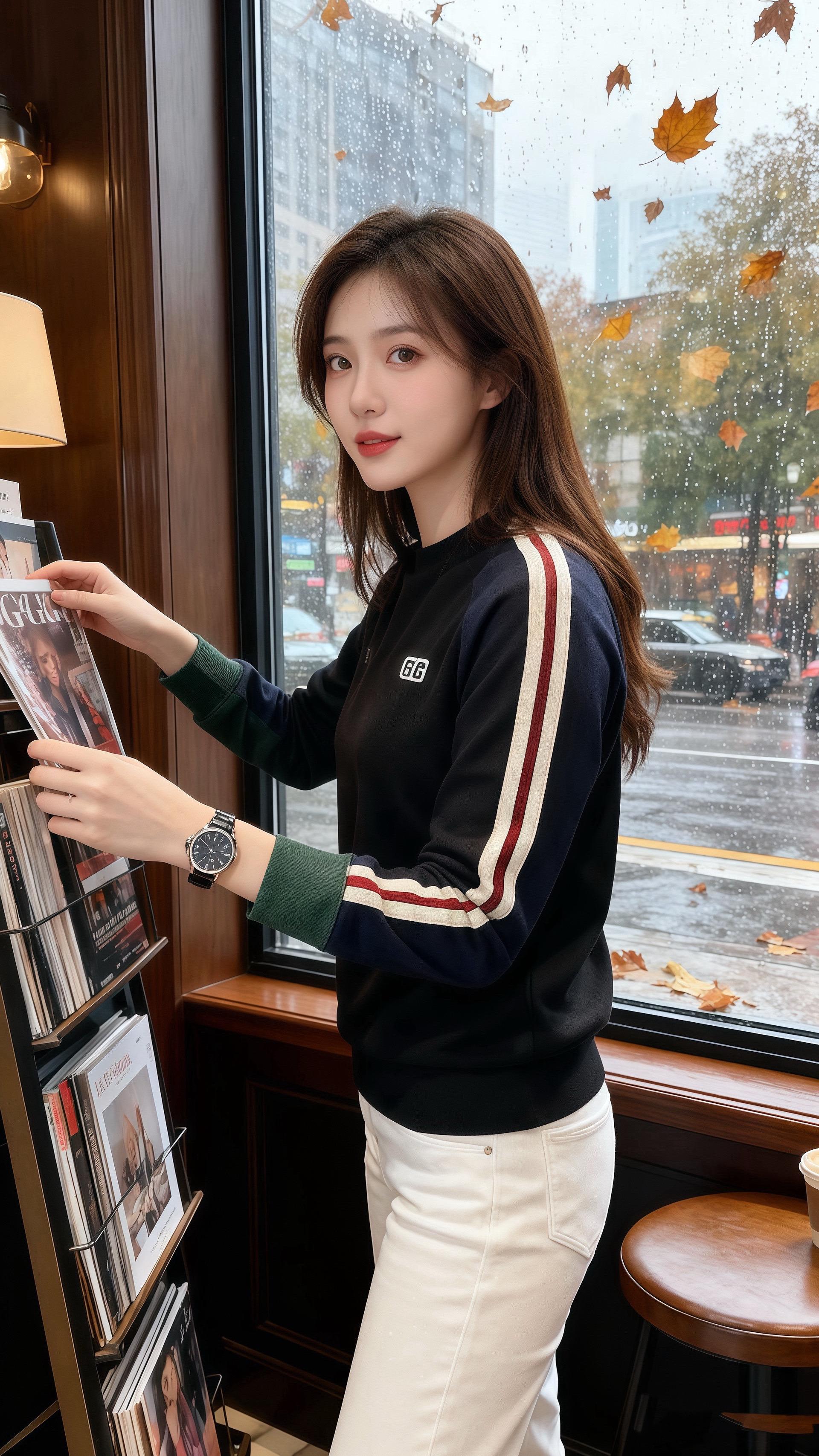 后来他们常约在这家店,陈也总说,那天她站在雨雾里,卫衣的撞色像没说出口的心动——不扎眼,却偏偏让他挪不开视线。连落叶落在她肩头时,都像