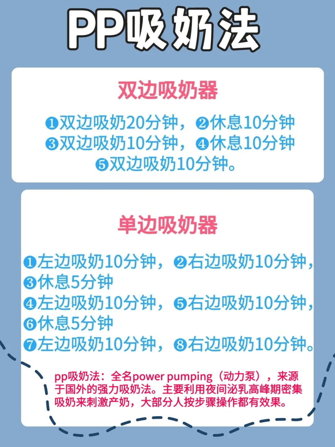 🍀每天选两个适合的时间点,一次白天一次夜间,操作PP追奶法(图片里有PP吸奶法的原理),结合我自己亲自实践的经验,有以下几点建议: