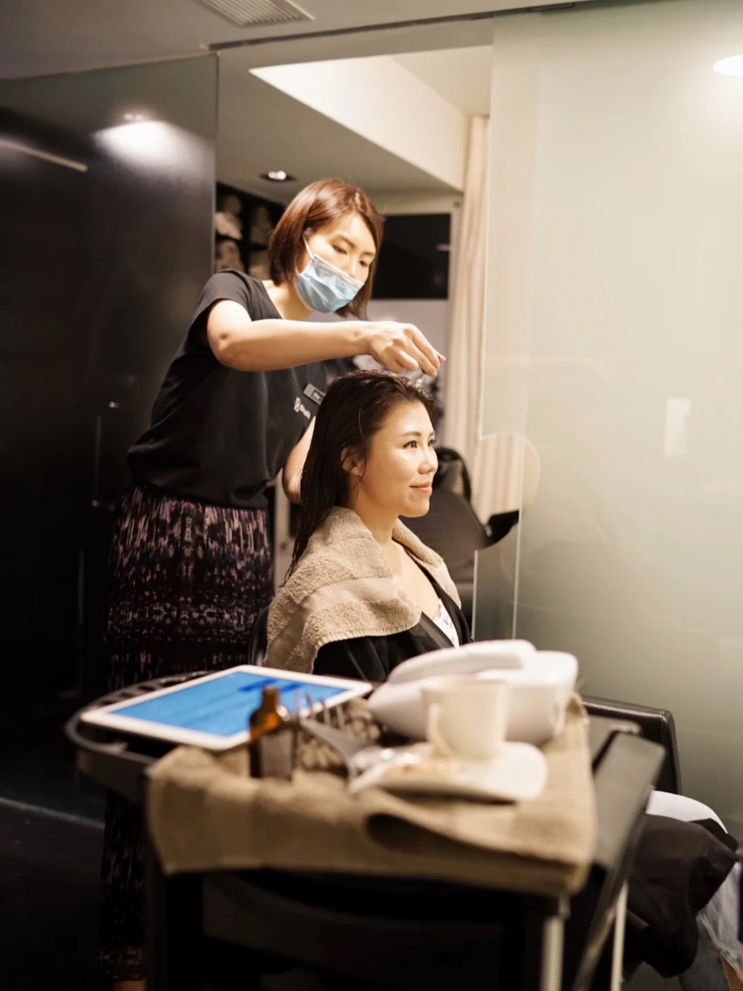 3⃣️洗发护发。头皮护理师为我挑选了日本高级沙龙品牌uka的头皮洁净调理液和头皮护理精华,我喜欢它尤加利和薄荷的清香,可以防止头皮氧化衰老,也可滋养头发。洗发和护发则是使用uka的晚安系列。有氨基酸、摩洛哥坚果油、大马士革玫瑰纯露,专门针对受损发质。结合护理师的按摩,整个过程实在太舒服了,我放松到睡着。