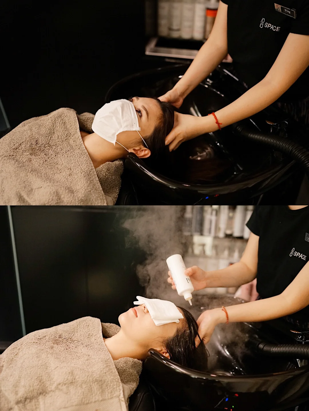 2⃣️头部按摩。在洗发、护发前会有头皮按摩的步骤。我真的无敌喜欢头部按摩,实在太放松了。
