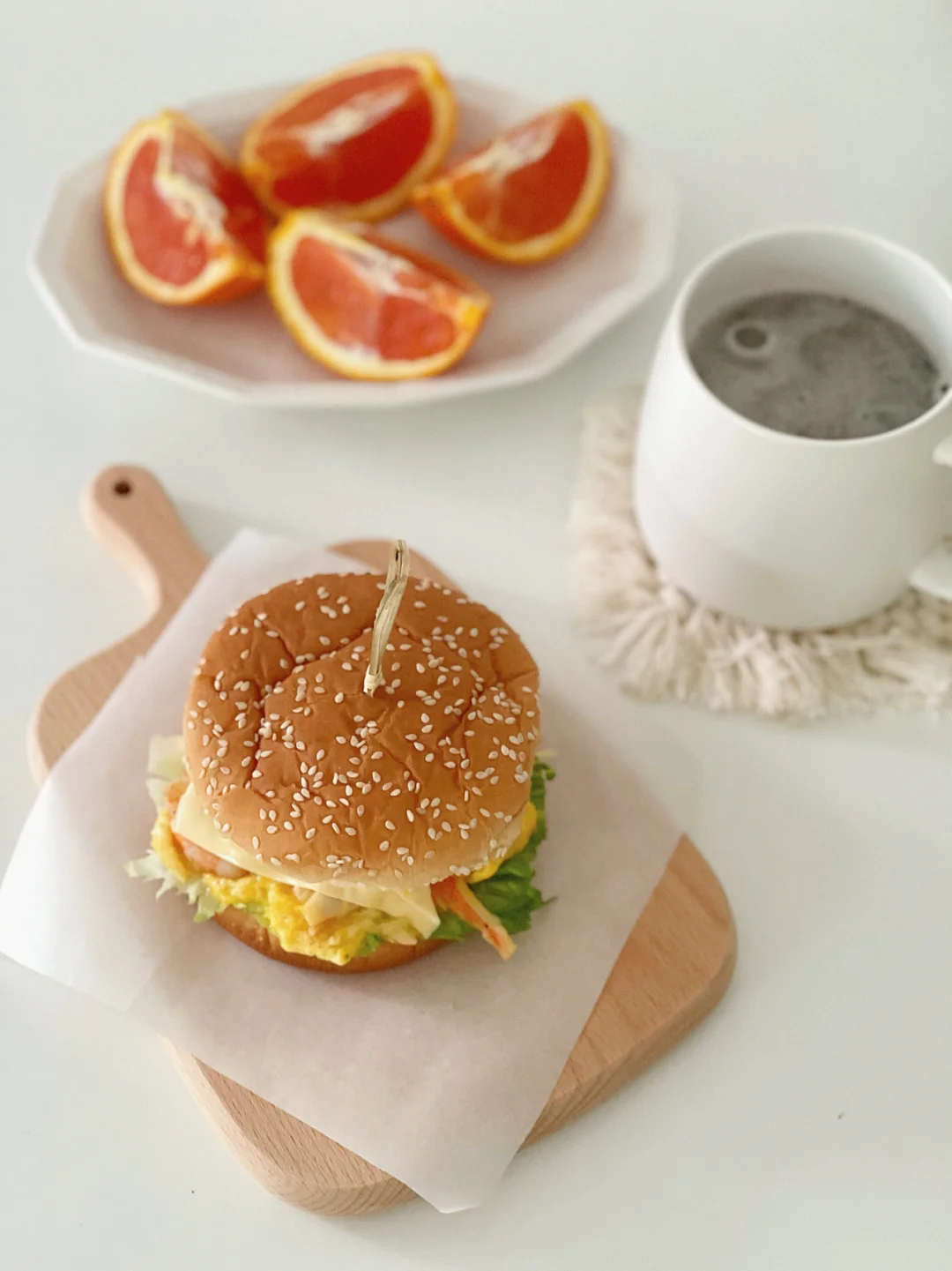 3.3早餐|汉堡,黑芝麻五谷豆浆,柚子橙 这几天仿佛跟虾杠上了一样[偷笑R] 提前腌制一晚 第二天想怎么造怎么造~ 📝虾仁5.6颗,提前黑胡椒,料酒腌制,煎至熟透 汉堡的胚都是去超市买现成哒~ 第一层用蔬菜铺底,挤上沙拉酱 蟹棒+鸡蛋+黑胡椒和一点盐混合做成滑蛋 铺在蔬菜上,然后把煎好的虾仁码在虾滑上 盖上一片芝士,把汉堡胚盖上就完成啦~ 简单快手巨巨巨巨满足好吃! 又是元气满满的一天开始啦[派对R]