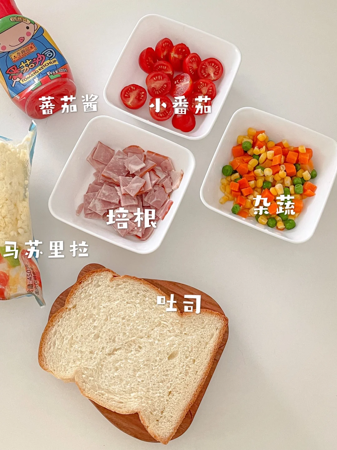 9.6早餐|周一愉快☀️ 今日份小猫拿铁☕️ 早餐太满足了[派对R] -食材见图二 蕃茄酱打底抹匀 放上一层杂蔬 把培根叠在上面 最后码上番茄 依次码成图四的样子 在最上面加一层马苏里拉芝士碎 烤箱165度20-25分钟[大笑R] 超营养的香喷喷土司披萨就好啦~ 早安小伙伴们[吧唧R] 希望今天工作不要忙到崩溃[捂脸R]
