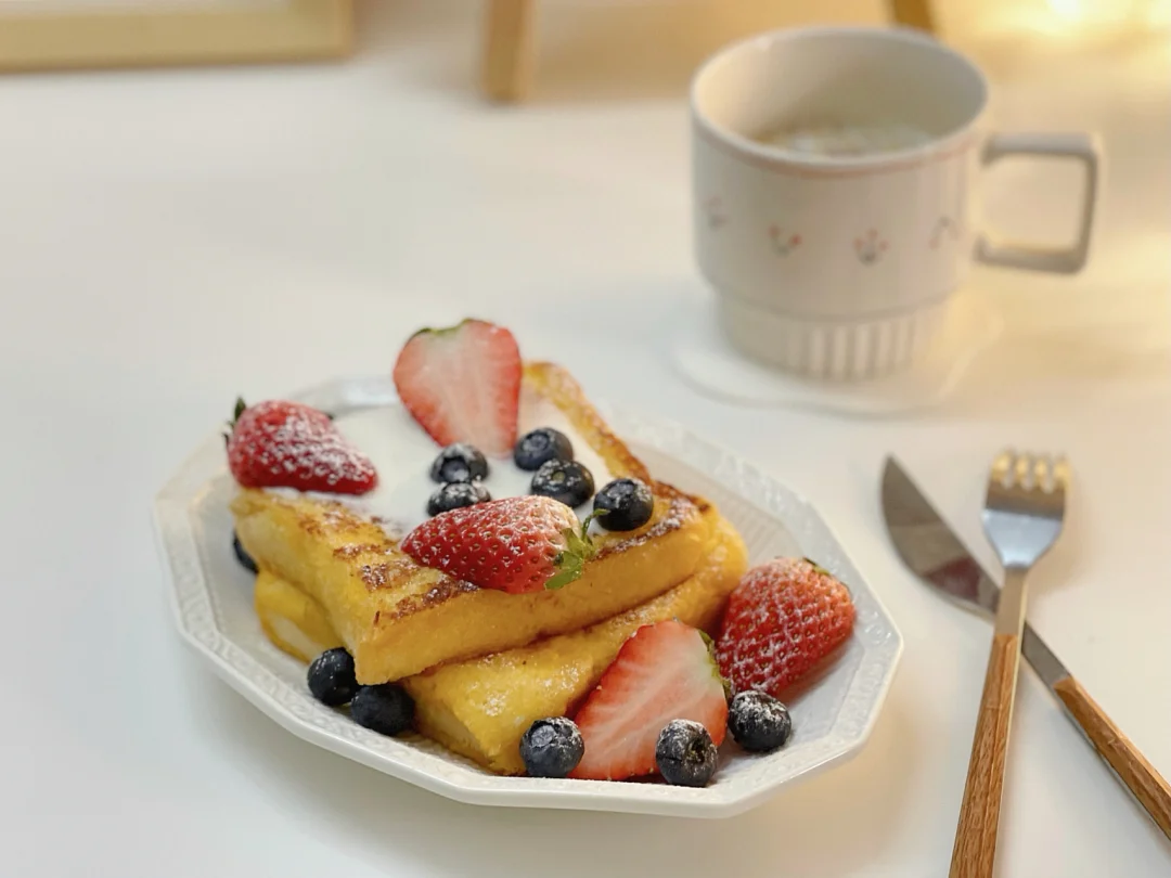 1.29|简单快手版法式厚吐司 上班族友好!!👩🏻💻 提前一个晚上准备好牛奶+鸡蛋混合均匀,吐司切片浸泡 放入冰箱冷藏~🥛🥚 第二天拿出来直接用平底锅🍳,黄油煎到两面金黄酥脆 码上喜欢的水果,撒上糖粉装饰~🍓 简直不要太完美[哇R][哇R]