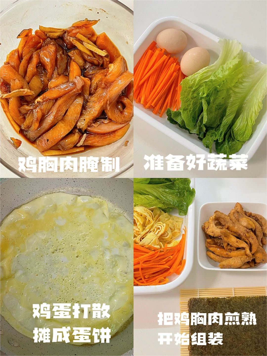 鸡蛋|胡萝卜|鸡胸肉|海苔片|生菜