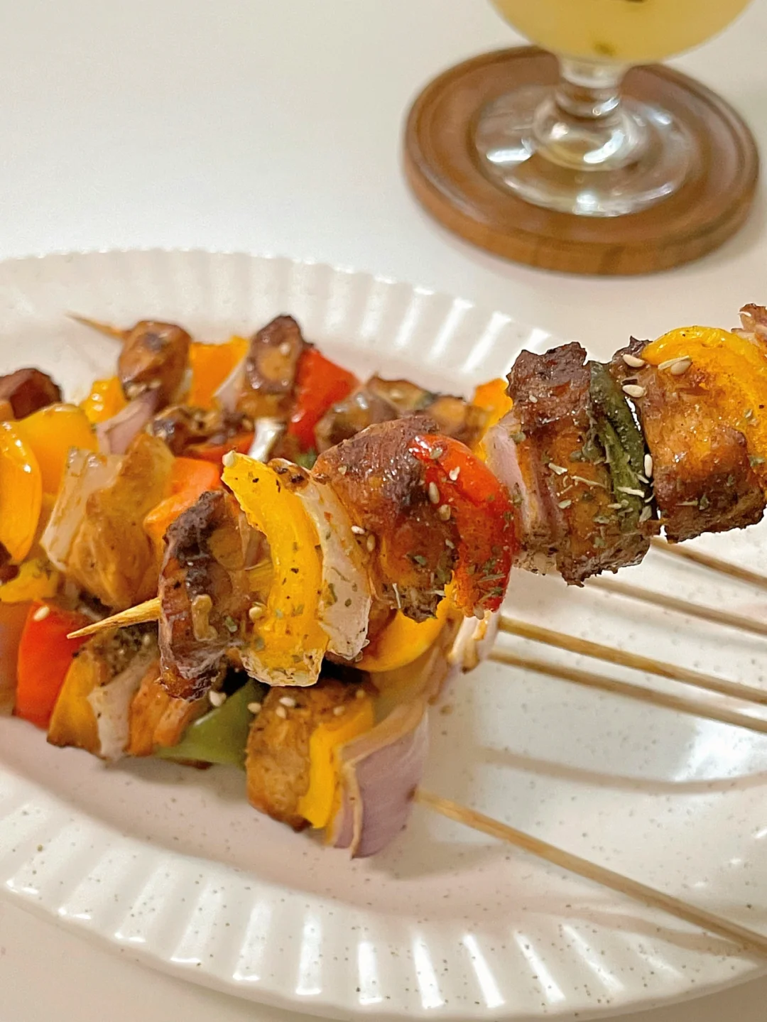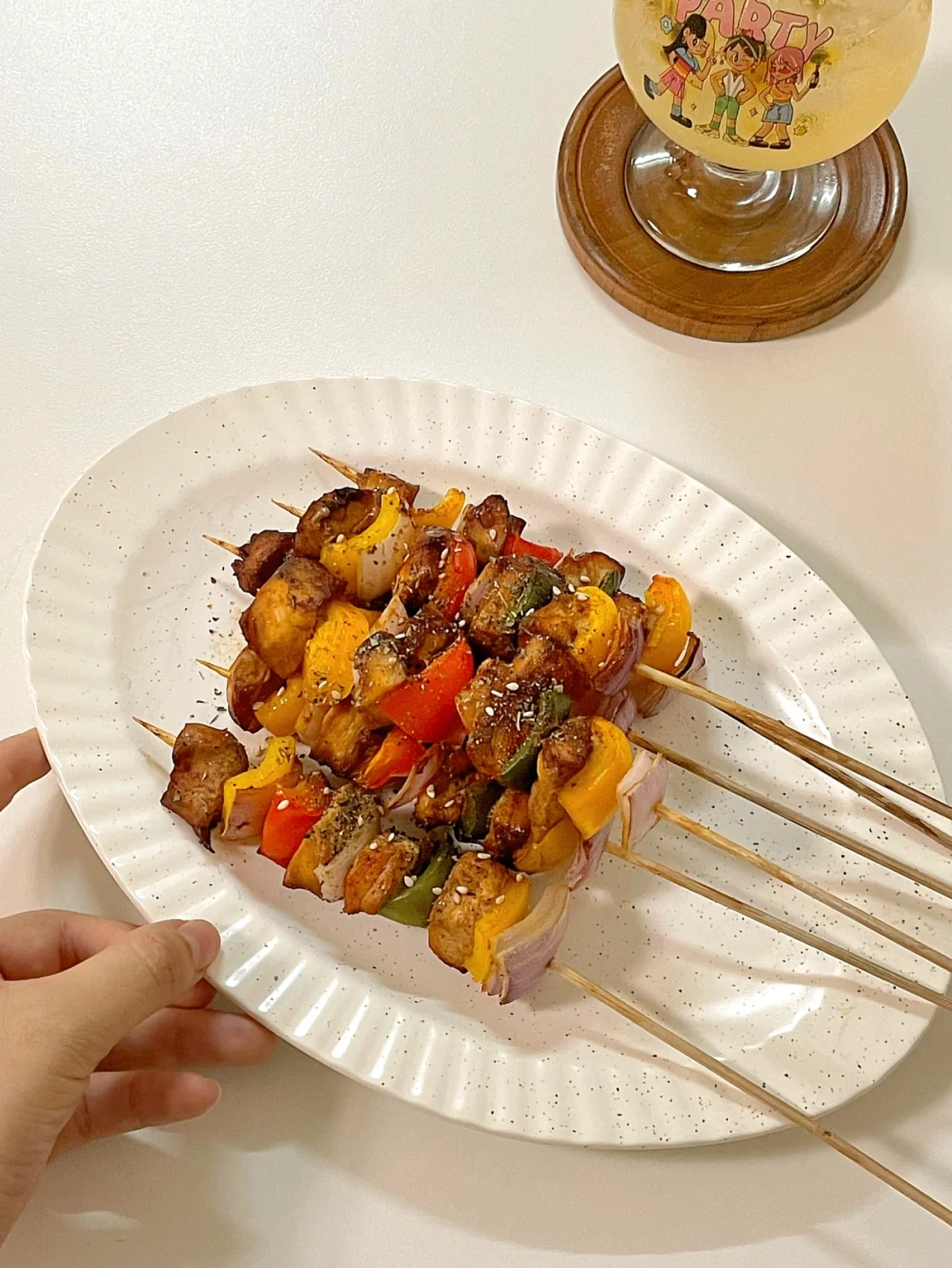 👩🏻🍳食材:洋葱 |彩椒 |鸡胸肉|竹签