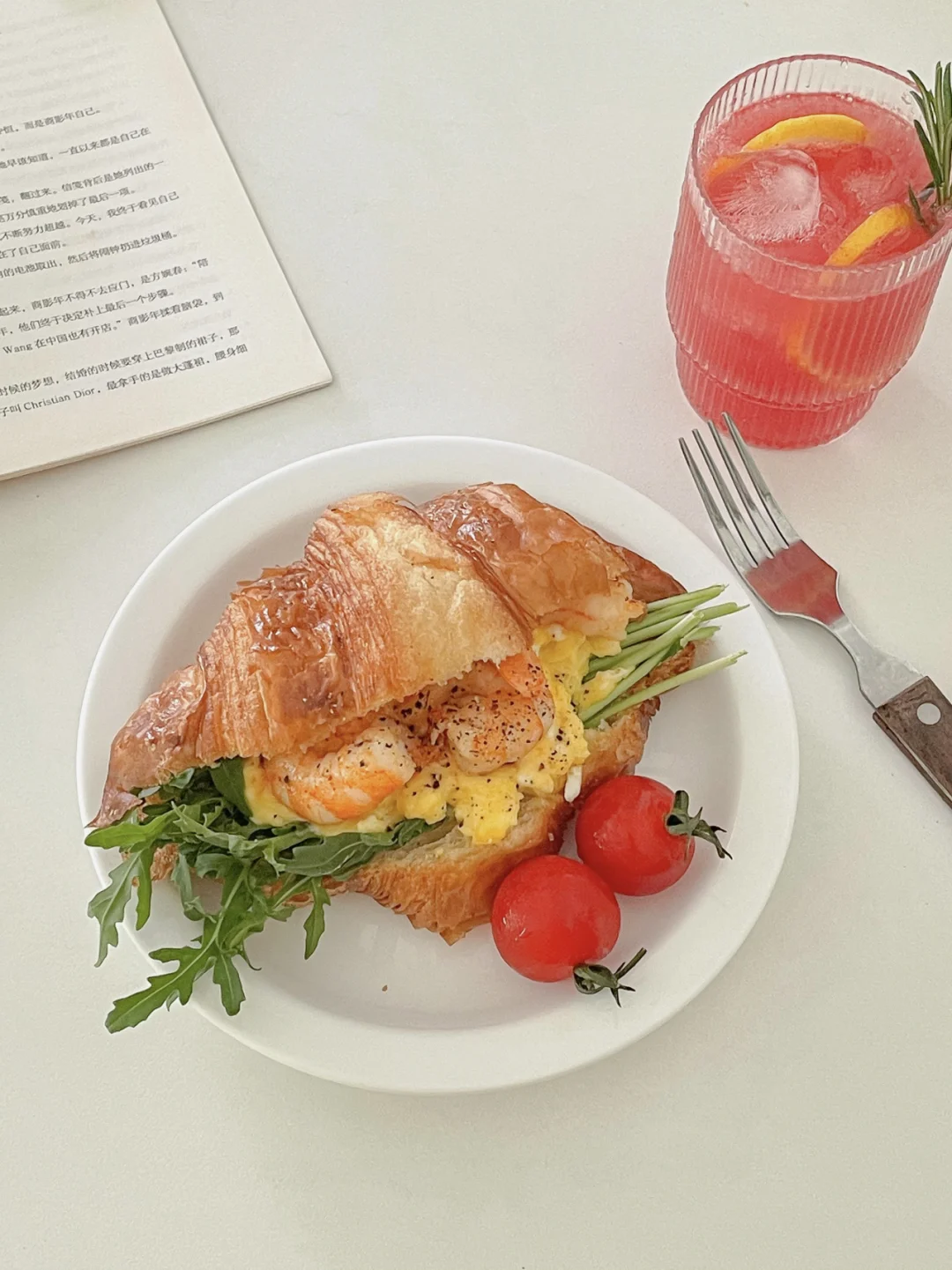 周末Brunch🥣|可颂滑蛋虾仁三明治🍤🥪