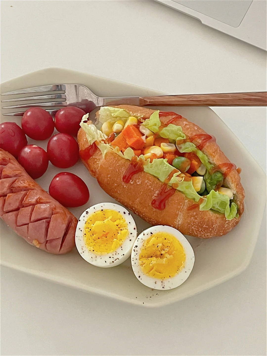 上班族快手早餐🥣|盐面包杂菜拼盘