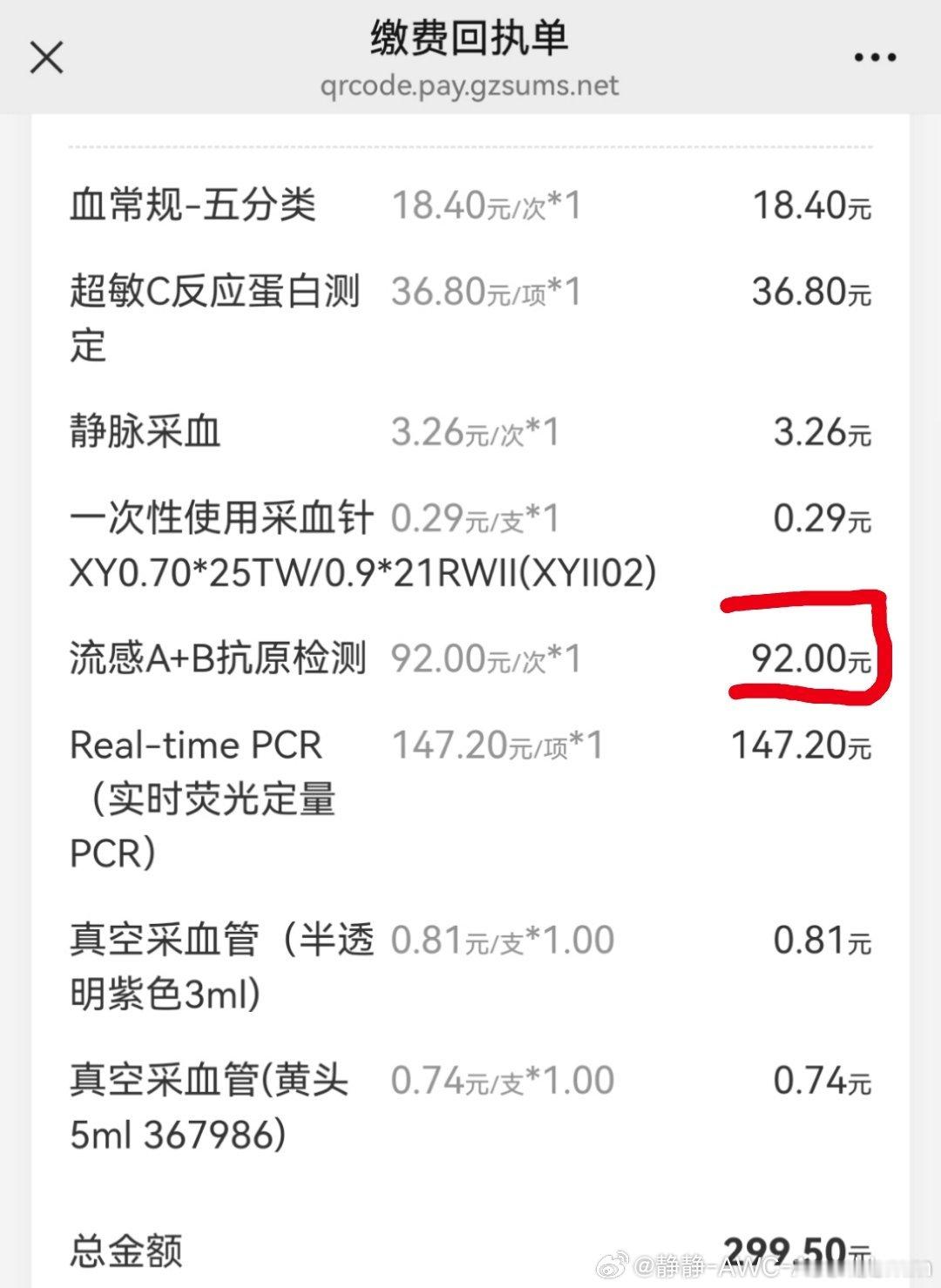 打卡中山一院急诊浅浅吐槽下收费小疑问验血一套才56流感抗原检测(就是伸管子进喉咙