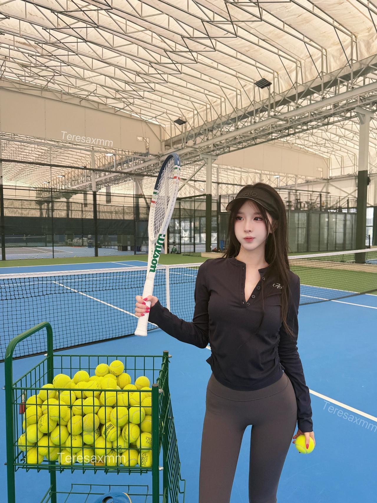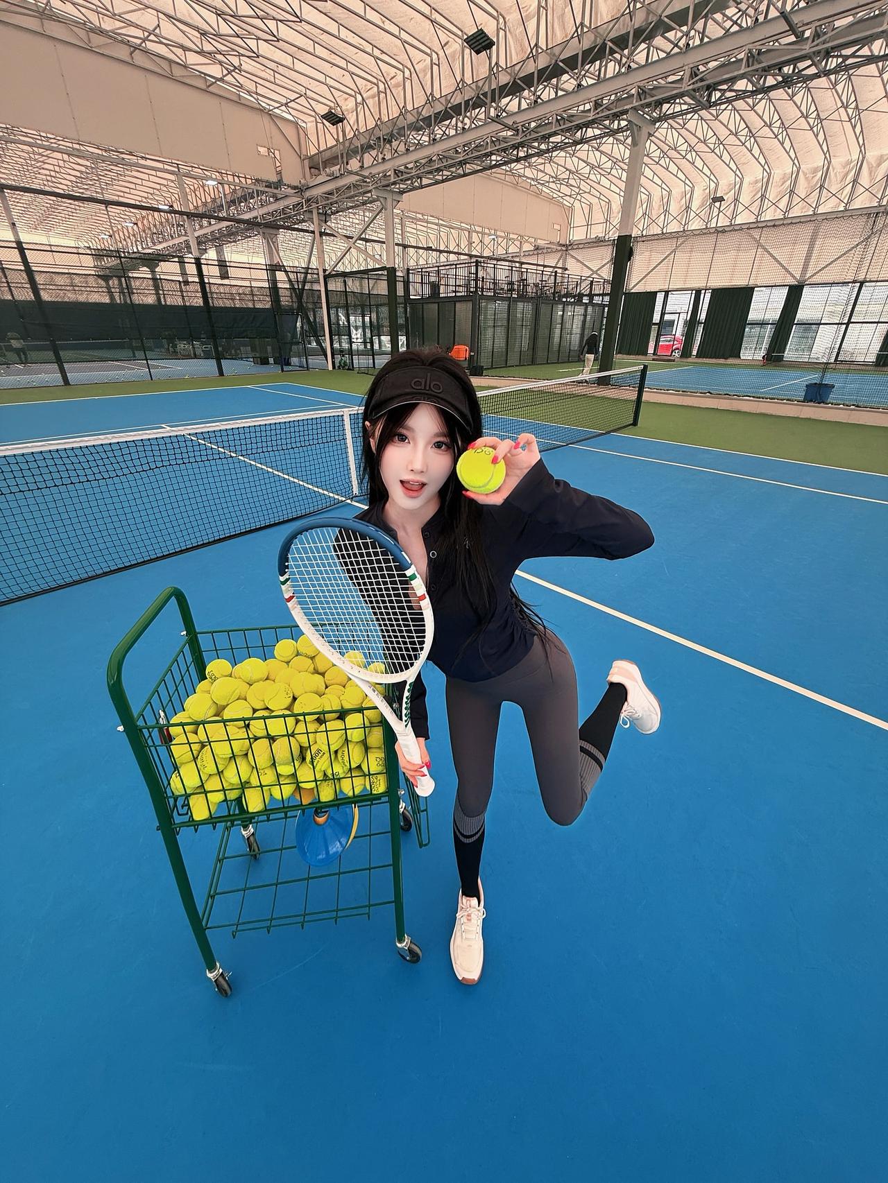 室内网球场上的活力少女,挥拍击球的瞬间!🎾💪美人照怎么拍才好看 女孩温柔似水,你们会喜欢吗?