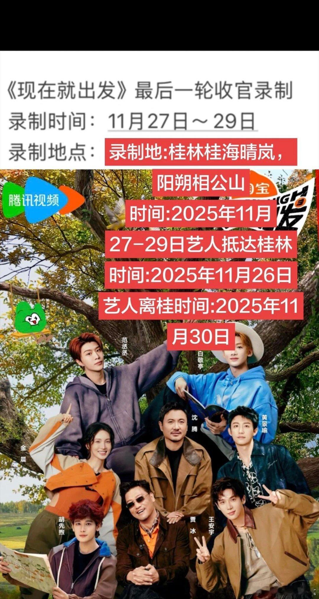 《现在就出发3》收官战 桂林 在桂林桂海晴岚,《现在就出发3》收官战 桂林在桂林桂海晴岚,阳朔相公山录制时间:2025年11月27-29日离开时间:11月30日现在就出发3 ‖现在就出发