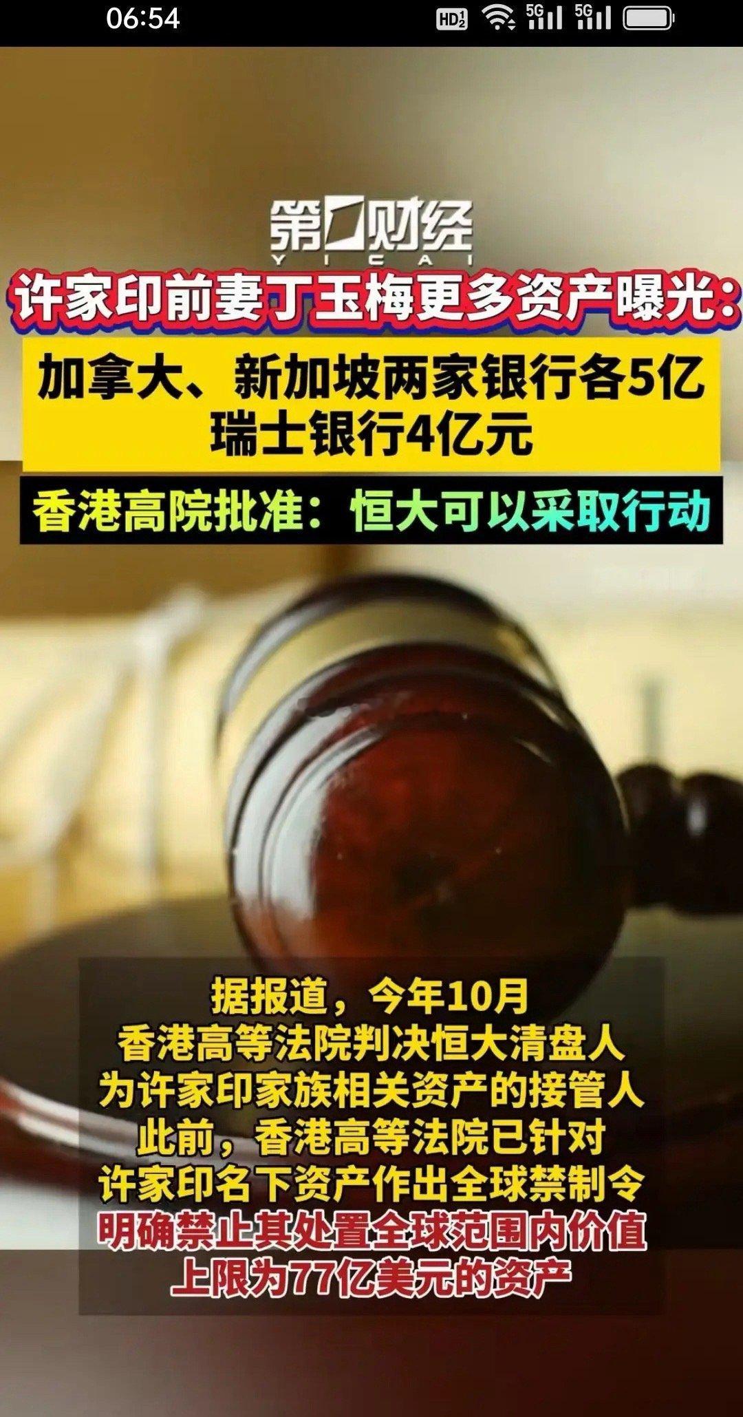太会藏了啊!许家印前妻丁玉梅的资产真的是遍布全球,做到了“鸡蛋不放在一个篮子里”,她真的是跟债权人玩“躲猫猫”啊!现在又在新加坡,加拿大,瑞士共找出15亿元,之前在英国就曝光有房产和现金高达5.5亿元。另有消息称,她在瑞士银行还有5.7亿美元资产,列支敦士登信托中还隐匿120亿港元现金。遍布全球的房产价值高达25亿人民币,这些资产都在慢慢浮出水面。恒大清盘人还指控她通过离岸信托等方式,隐匿了200—400亿港元的资产,目前其海外大量资产已被多地法院冻结。因此,不管丁玉梅到底有多少资产,最终也会被“牵出萝卜带出泥”查出来,大家都好奇这么多钱究竟是怎么从国内转移出去的,事实证明,丁玉梅确实早就未雨绸缪,做好最坏打算,在跟许家印离婚前就做好了万全准备。不过丁玉梅千算万算,还是没想到,这些财产最终会被法院进行全球追索,迎接终极大清算。