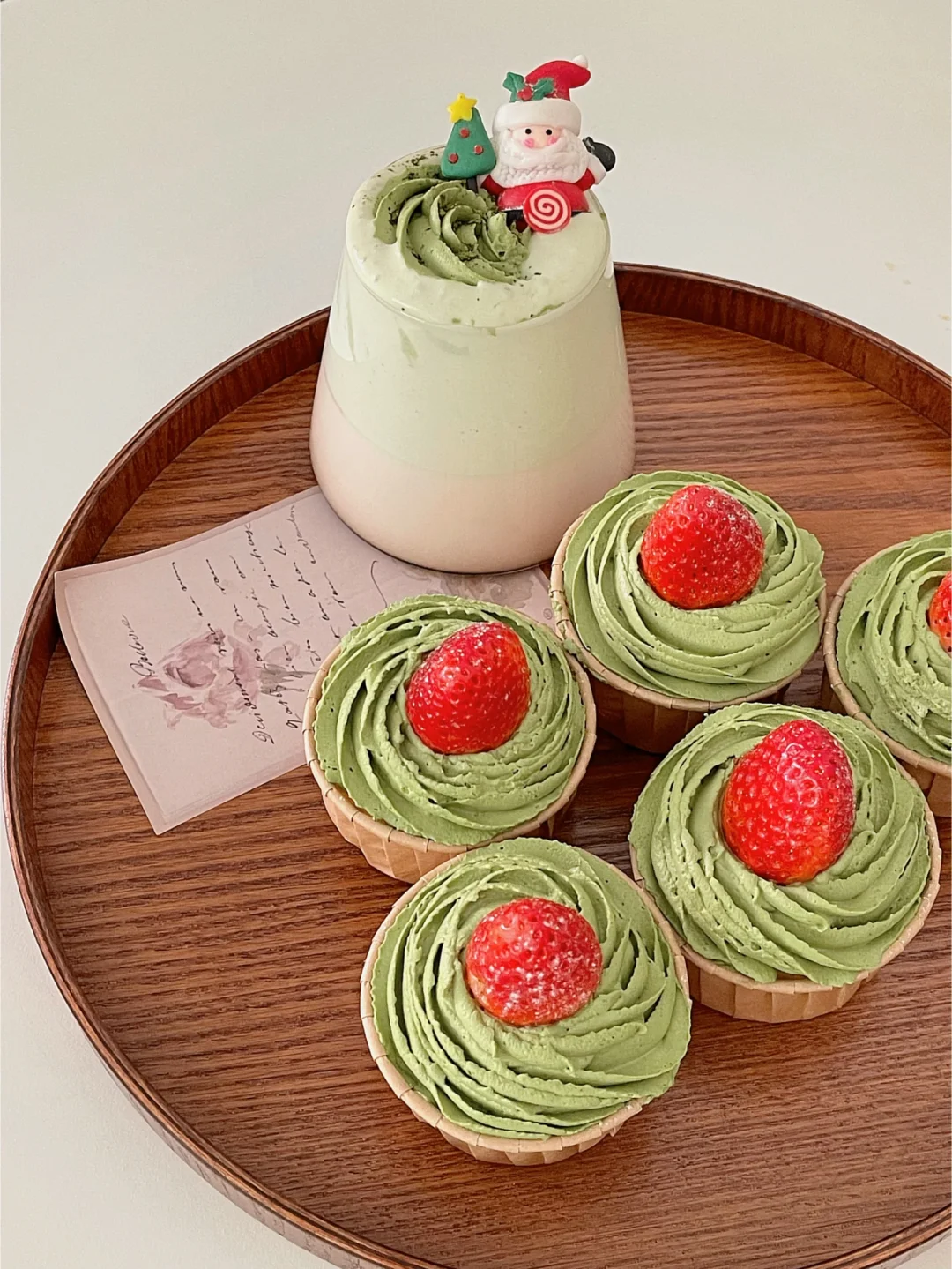 -在家里做个有圣诞配色的抹茶草莓蛋糕🍰