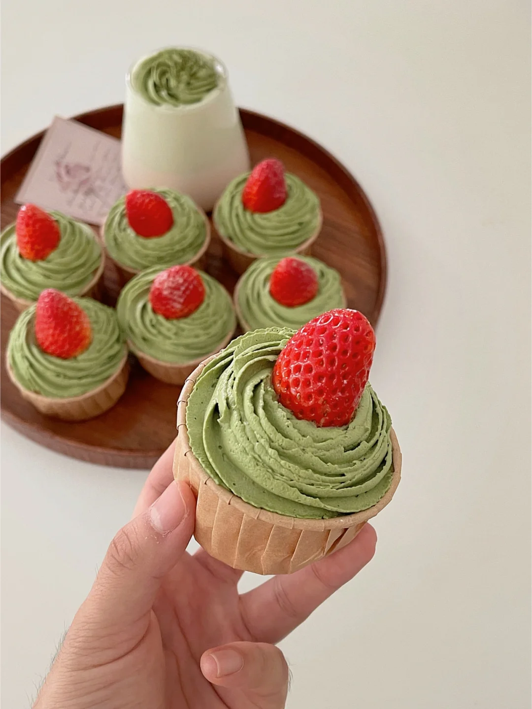 200g奶油,16g白砂糖,6g抹茶粉8分发~可以挤出好看的纹路做出了8个奶油顶