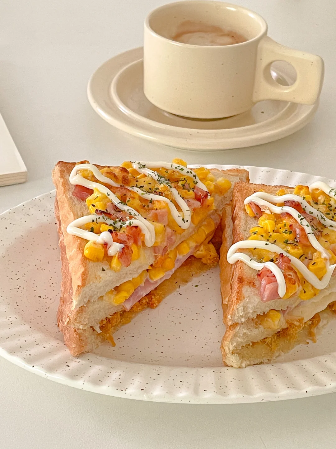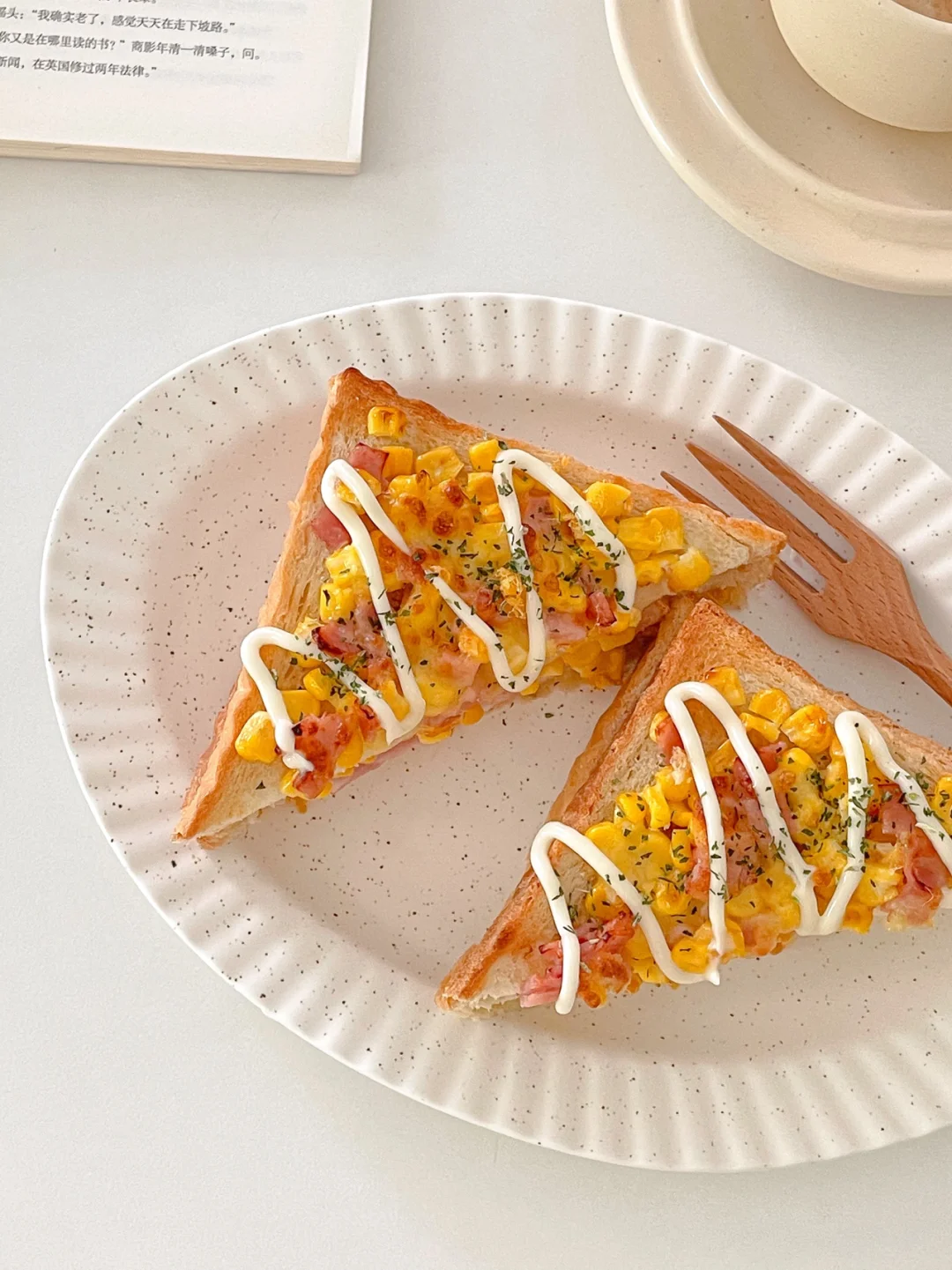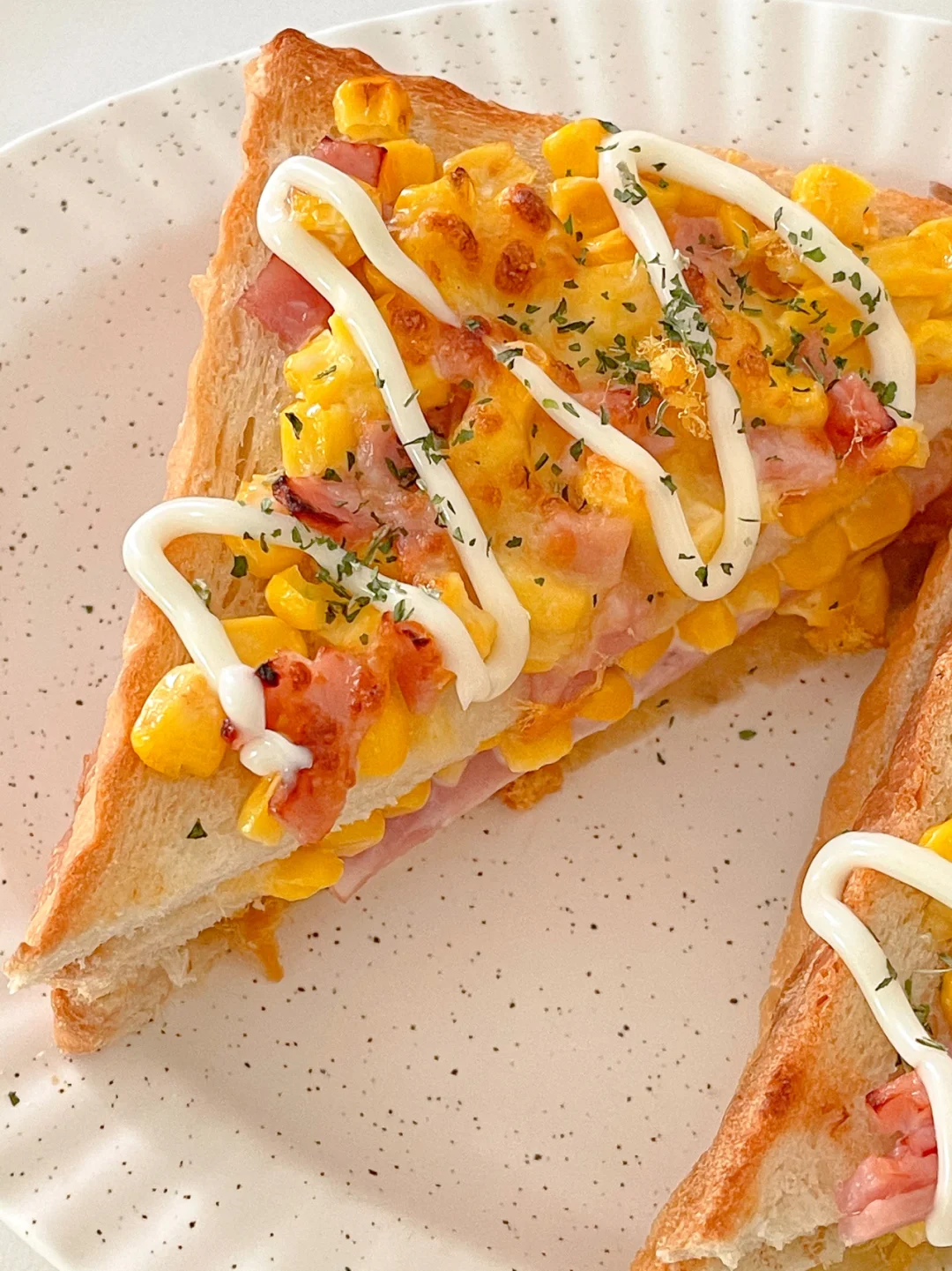 3.第三片吐司盖上后 把🈶️火腿碎的甜玉米