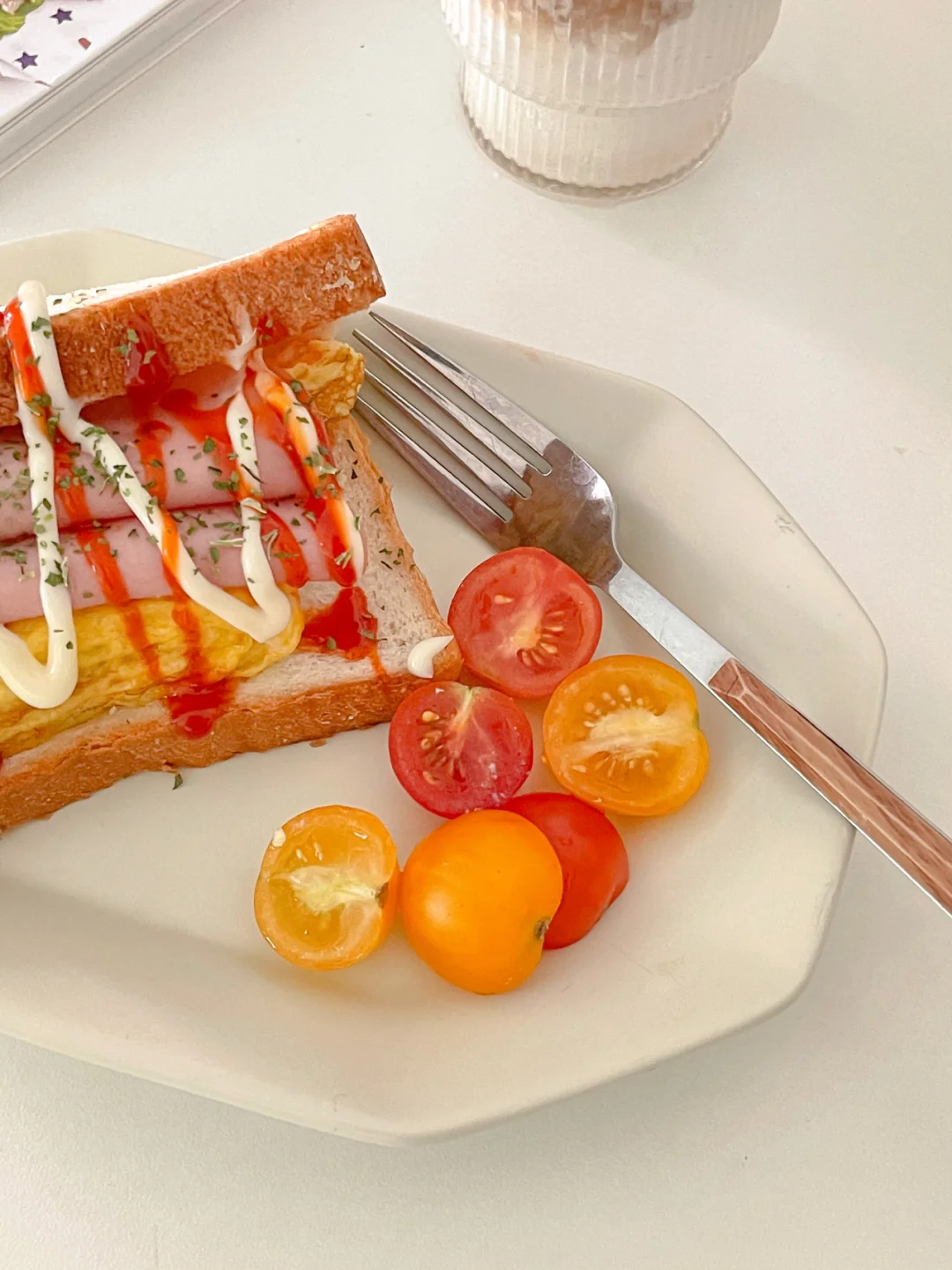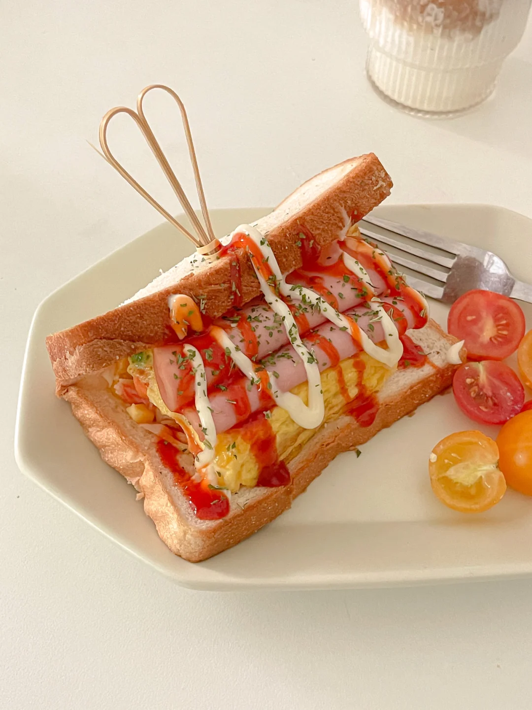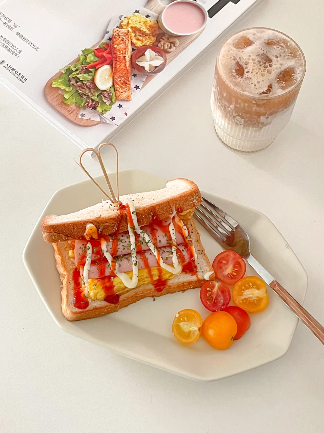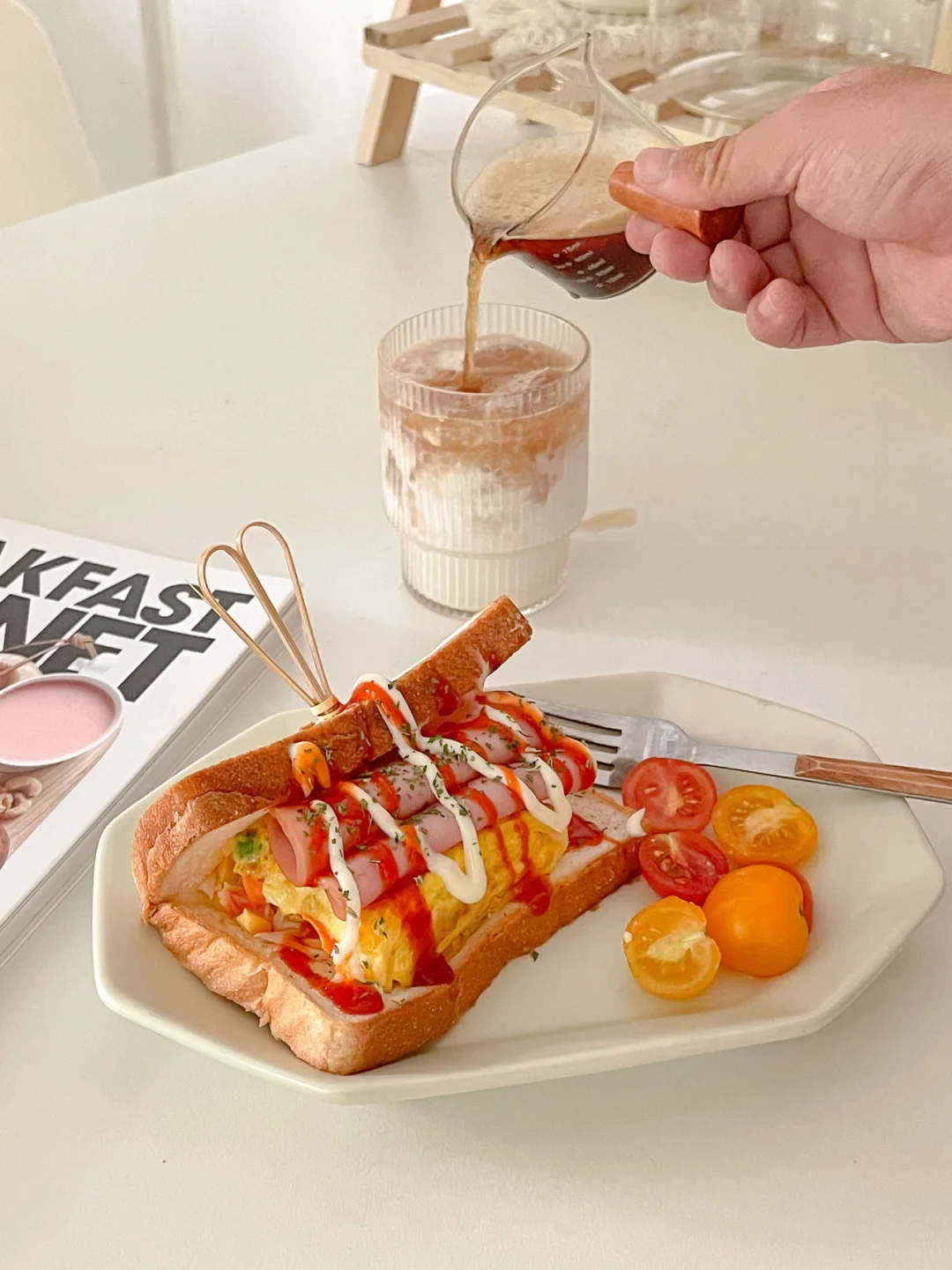韩式街头杂菜厚蛋三明治🥪|自制生椰拿铁☕️
