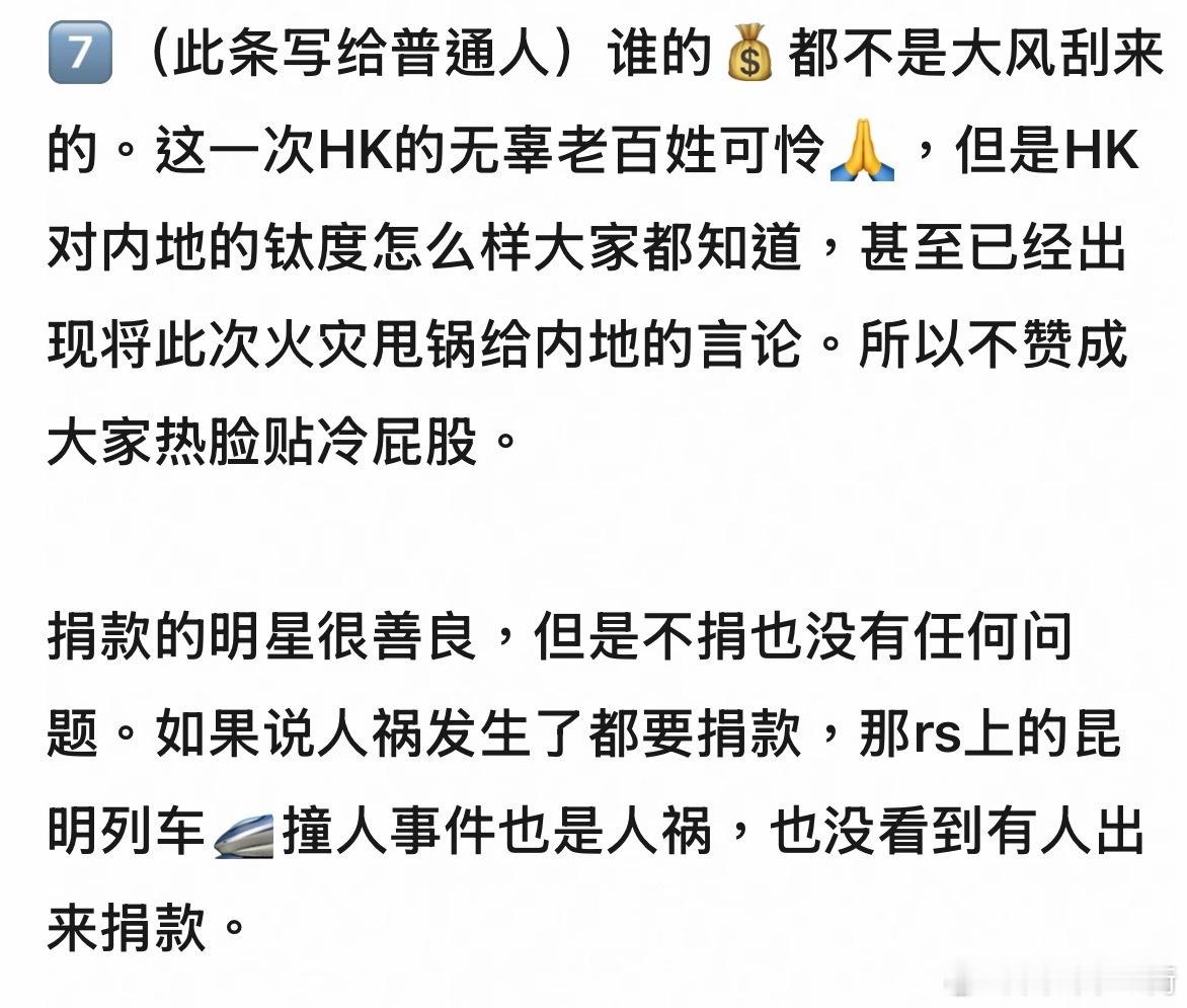 同意,这次的香港大火不是天灾而是人祸,没必要逼着内娱208捐款