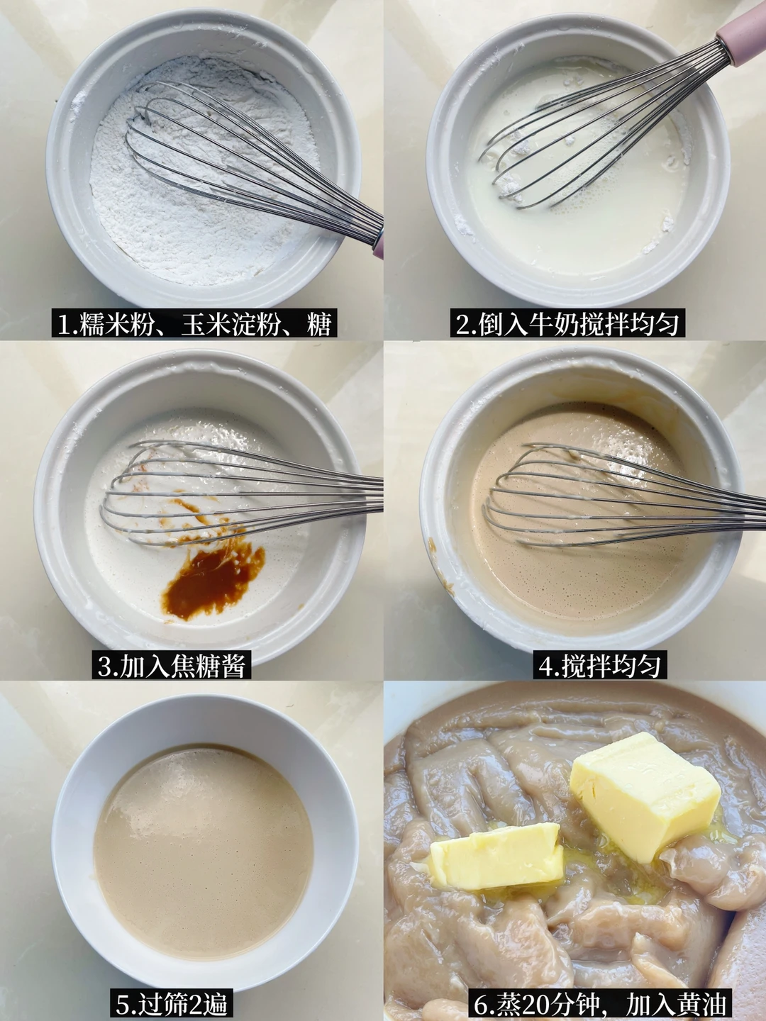外皮:糯米粉120g 玉米淀粉30g 牛奶200g 焦糖酱15g 细砂糖20g 黄油15g