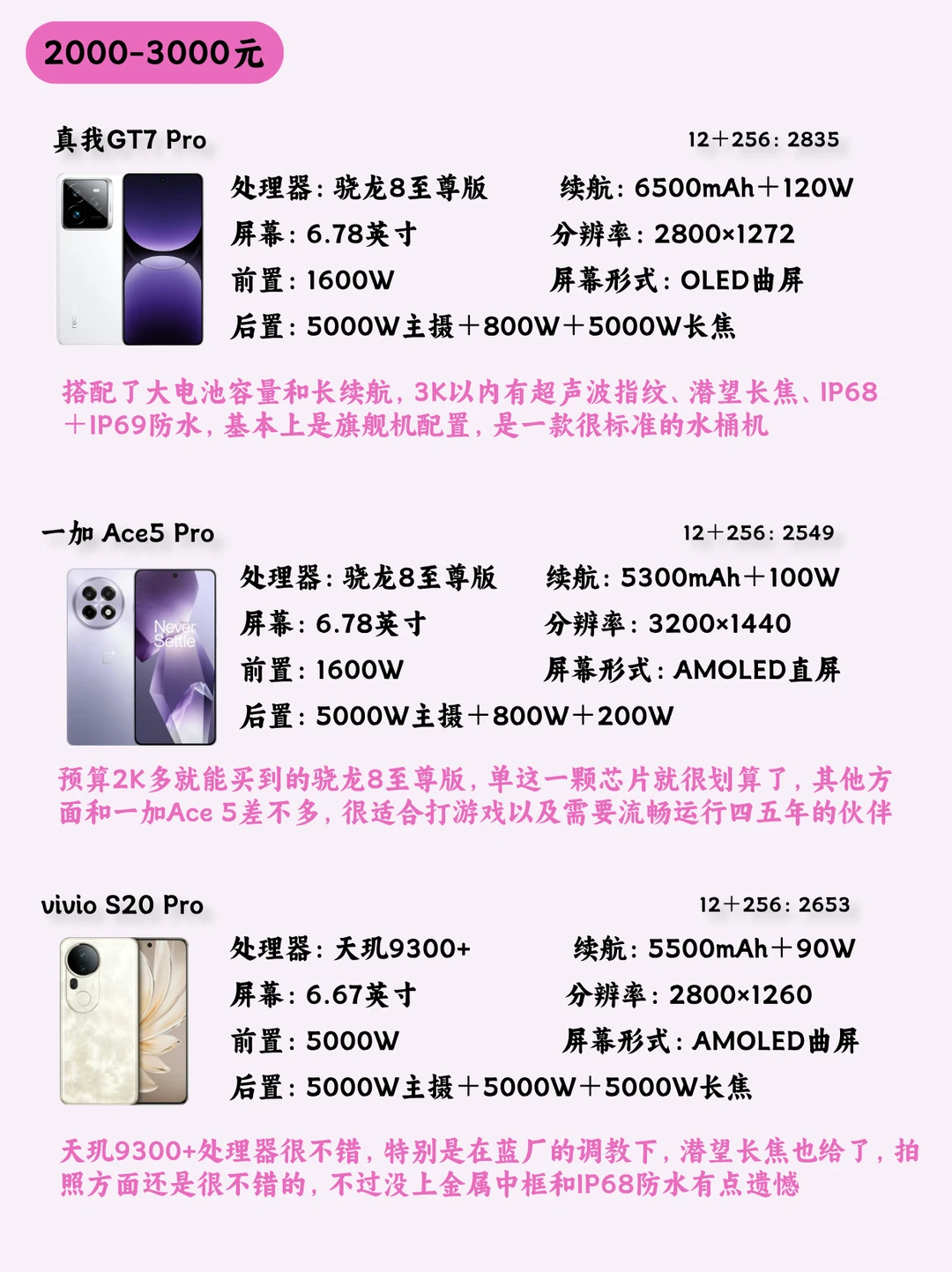 真我GT7 Pro、一加 Ace5 Pro、vivo S20 Pro