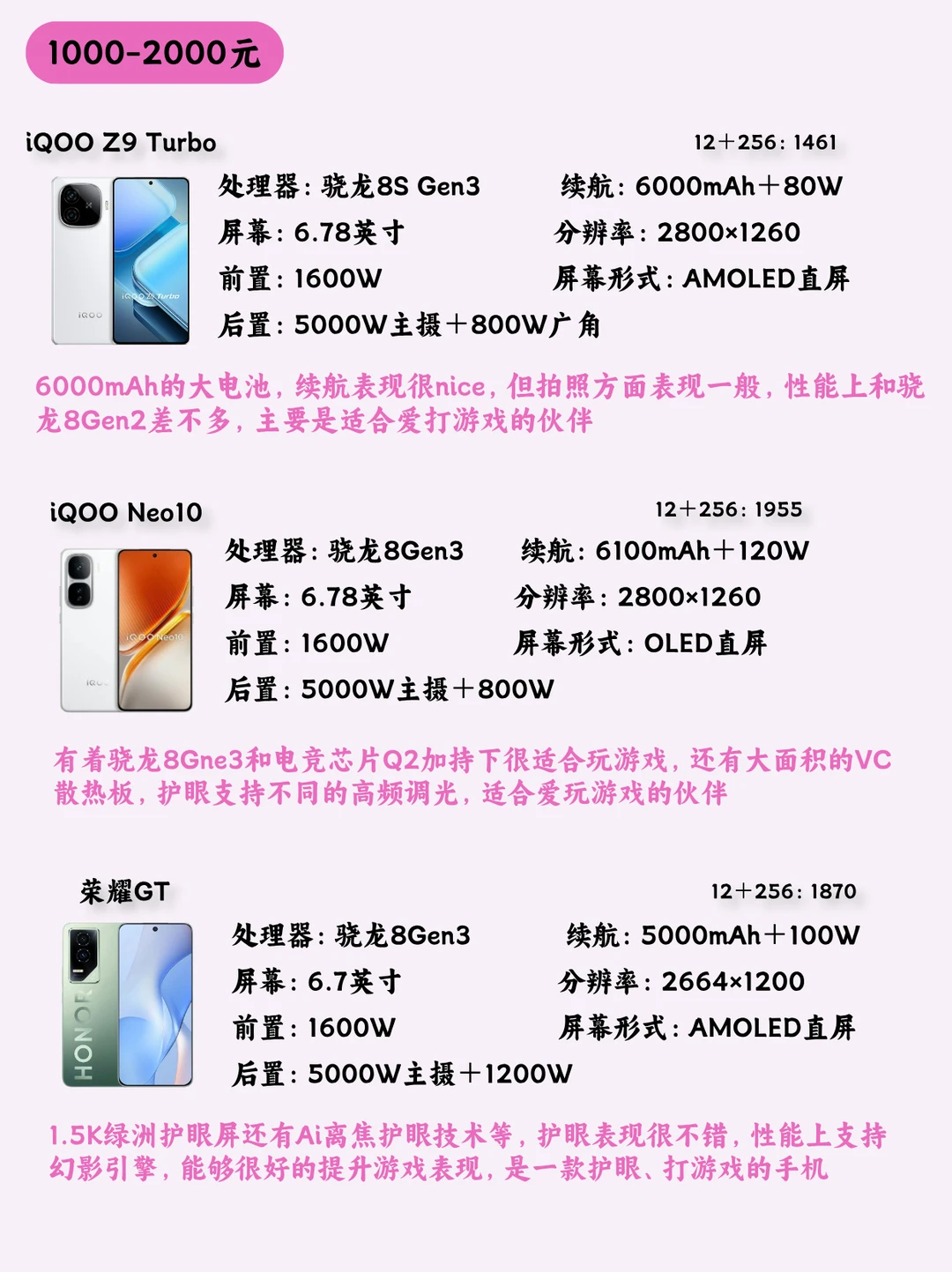 iQOO Z9 Turbo、iQOO Neo10、荣耀GT