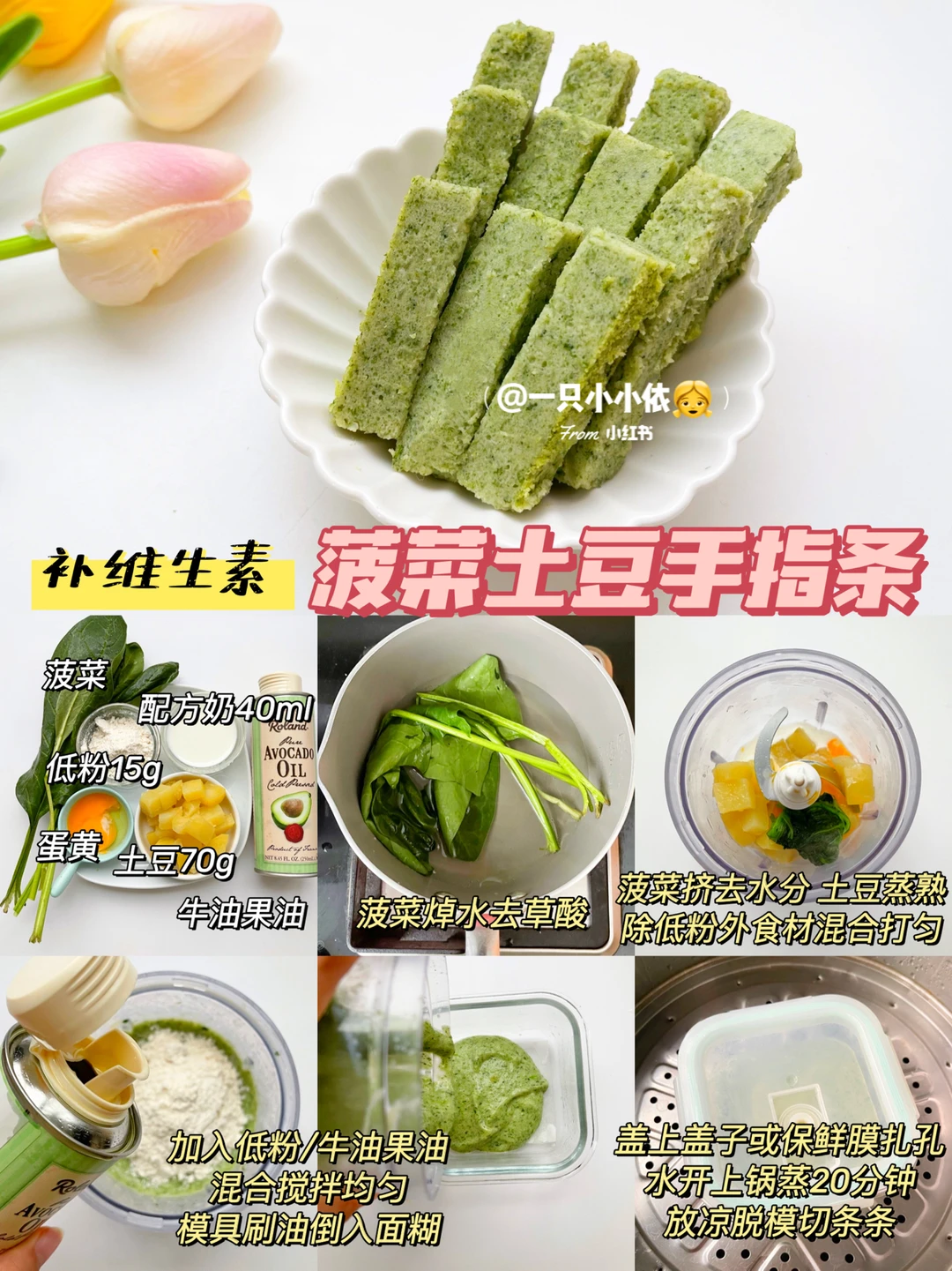 🔹食材:菠菜、蛋黄、土豆、配方奶、低粉、牛油果油