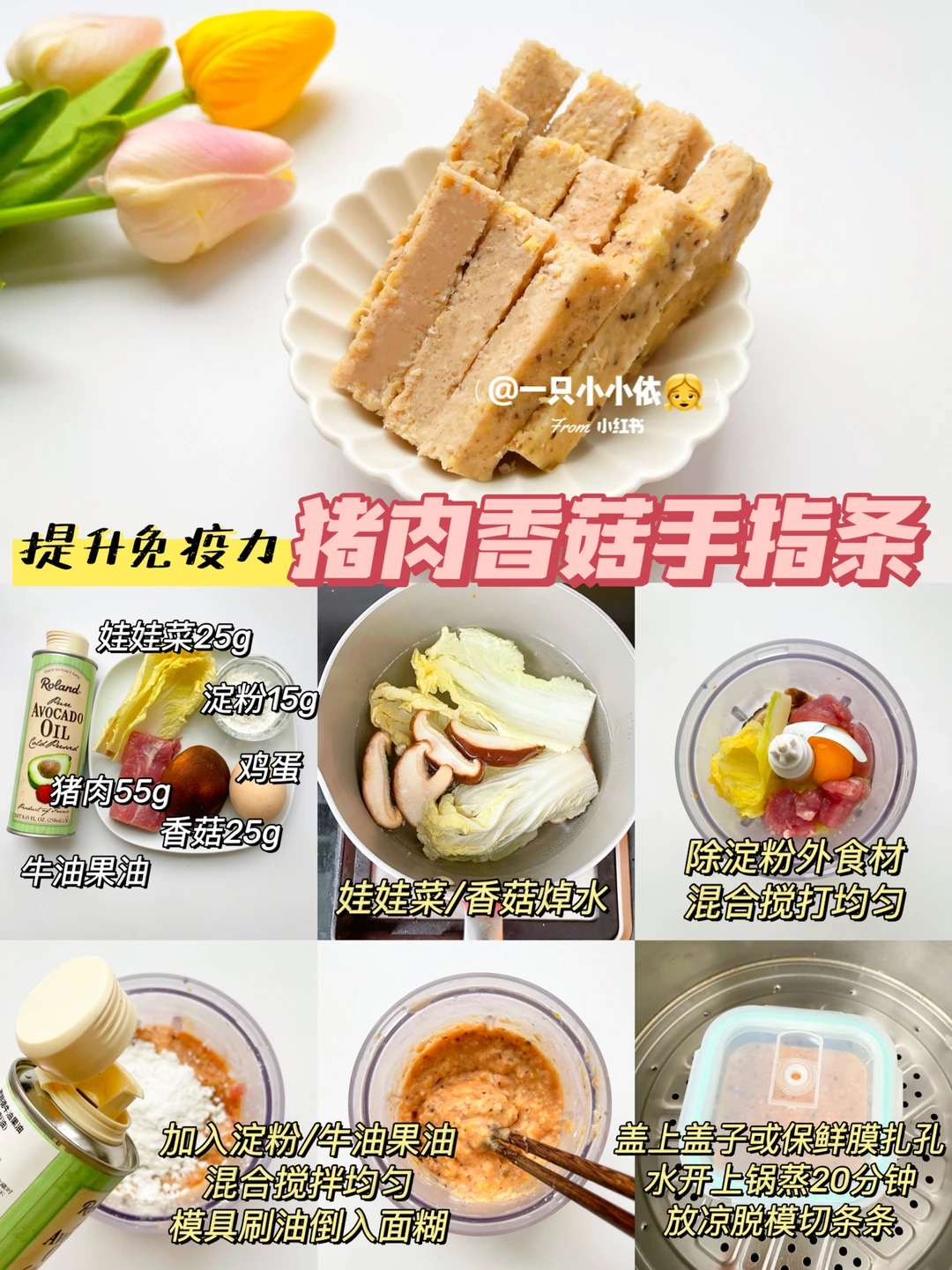 🔹食材:猪肉、娃娃菜、香菇、鸡蛋、淀粉、牛油果油