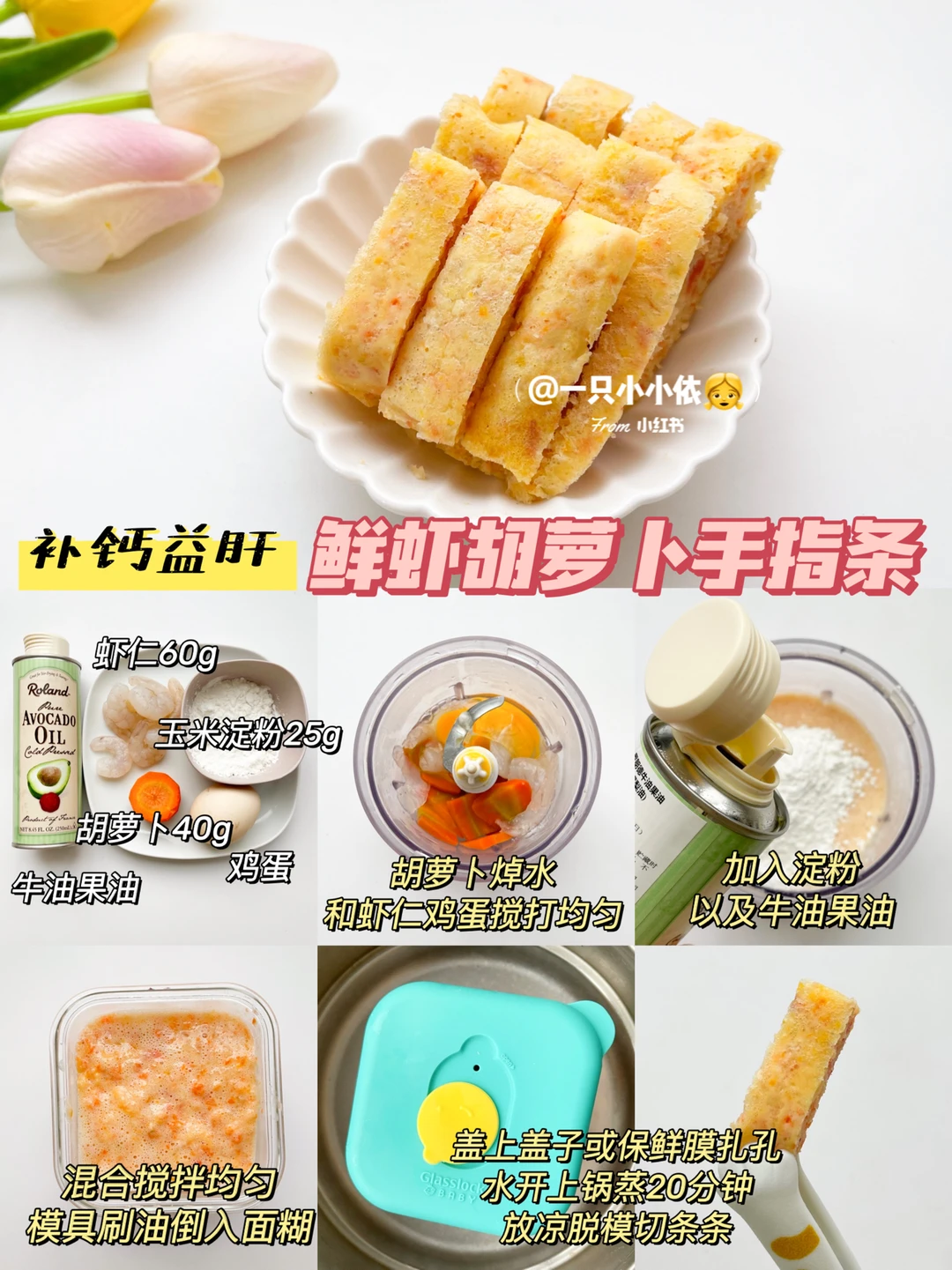 🔹食材:虾仁、胡萝卜、鸡蛋、玉米淀粉、牛油果油
