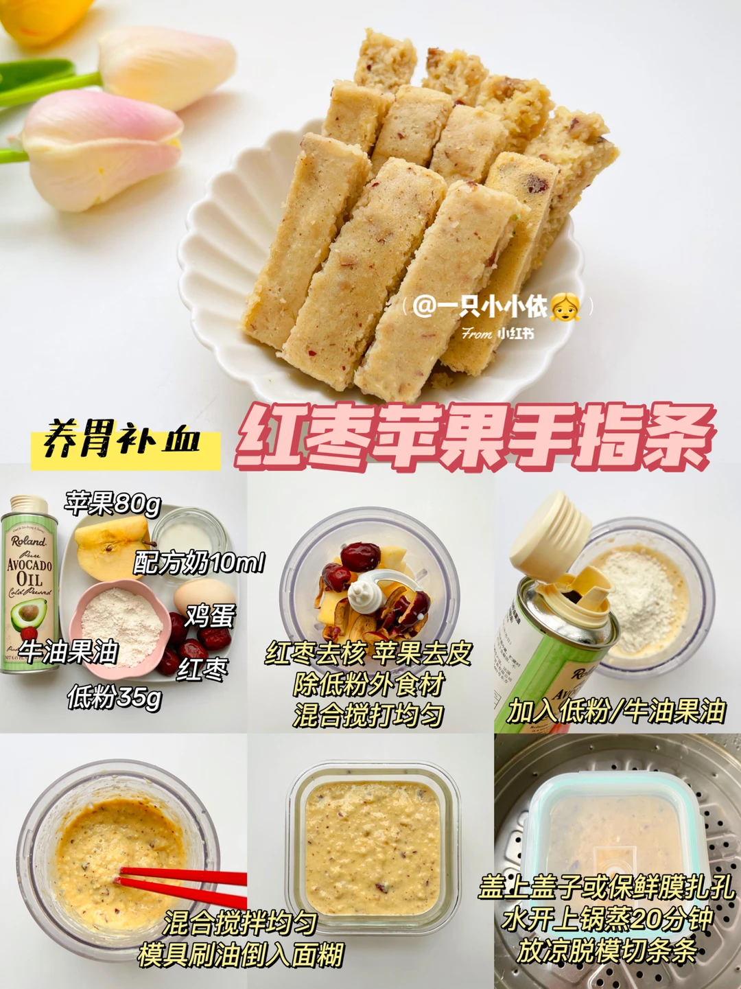 🔹食材:苹果、红枣、鸡蛋、配方奶、低粉、牛油果油