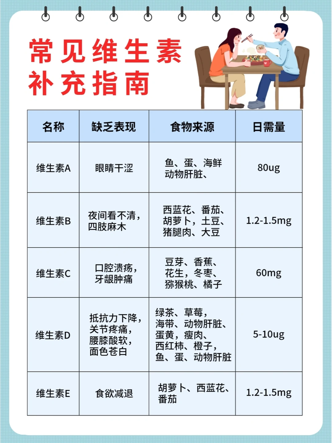 🌈维生素对人体的作用非常重要,如果长期缺乏某种维生素,人体便会通过各种“信号”表现出来。建议多通过食物来摄入维生素,尽量少吃💊。