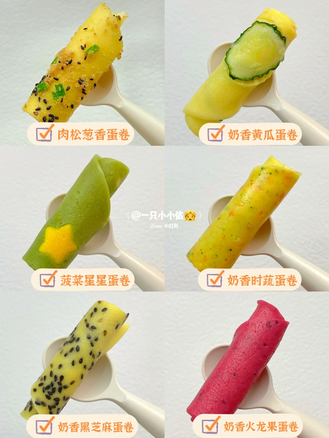 🥚鸡蛋和配方奶混合,奶香敲浓郁,再搭配黄瓜/火龙果/菠菜/胡萝卜等果蔬,营养全面又美味😄卷成小卷适合宝宝小手抓握,可以当成手指食物锻炼宝宝自主进食哦!详细教程来啦[斜眼R]