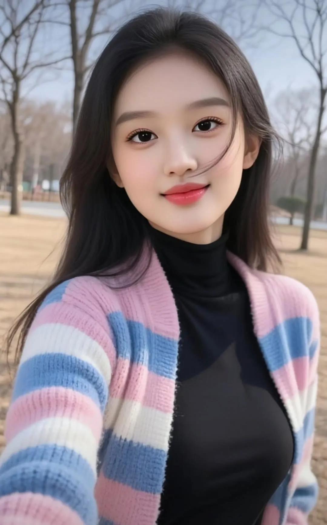 温柔冬日穿搭,粉色毛衣与黑色高领的完美结合,温暖又时尚!街拍 高清美女
