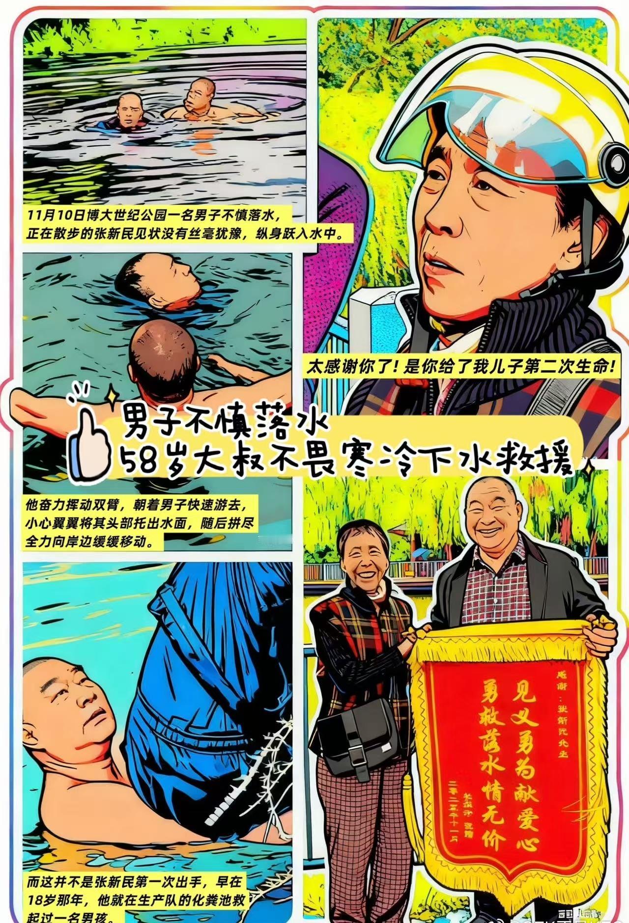 【浙江大叔寒冬跳河救人】近日,金华市民张新民在公园,发现一名男子不慎溺水,他跃入冰冷的湖水,将落水者救上岸。早在17岁时,他就曾救起1名落水男孩。向这位英雄致敬。