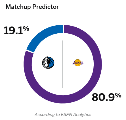 ESPN预测明日湖人vs独行侠比赛:湖人胜率高达80.9%