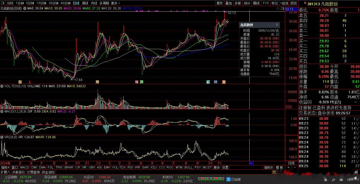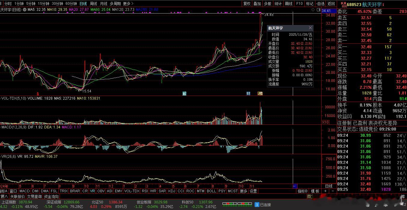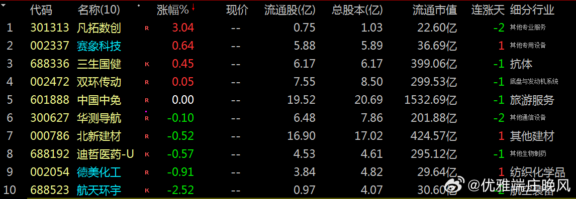 【财富晚茶】十大利好(11.28):追寻沪深北市十大利好信息的股票导语:作者系《网易号》优质财经领域创作者。曾经原创作者和知名网易号旅游领域创作者。大跨度行业等的写作,颇受网友喜爱。作品发表于 2025.11.28.09:38 优雅端庄晚风。编者的话:追寻市场:蛛丝马迹动态趋势。今天主题:【财富晚茶】十大利好(11.28):追寻沪深北市十大利好信息的股票。最新市场:新鲜出炉:2025.11.28.09:38 十大利好股票参考。偏重其中:机构分析、龙虎榜数据、高成长性潜力等。综合筛选:涵盖航空装备、生物制药、旅游等领域。兼顾短期:热点长期估值。每个股票:附简要利好原因。一、主力资金:市场表现前三佳股票航天环宇(688523)凡拓数创(301313)三生国健(688336)二、主力资金:十大利好信息的股票1、航天环宇(688523)核心逻辑:专注卫星和火箭零部件制造头部企业。早晨点评:近期资金活跃度显著提升。2、双环传动(002472)核心逻辑:为特斯拉一级供应商。早晨点评:人形机器人减速器布局具备确定性。3、凡拓数创(301313)核心逻辑:宇宙领域翘楚。早晨点评:技术体系完整,空间计算及元宇宙领域布局前瞻。4、三生国健(688336)核心逻辑:益赛普在类风湿关节炎领域领先。早晨点评:创新抗体药管线丰富。5、德美化工(002054)核心逻辑:研发与品牌双驱动头部企业。早晨点评:有机硅概念及参股银行、券商业务提供多元增长点。6、赛象科技(002337)核心逻辑:智能制造领先。早晨点评:技术强客户优,受益于天津自贸区及京津冀一体化政策。7、华测导航(300627)核心逻辑:智能家居联合方案领先。早晨点评:定制精装材料业务增长,人工智能领域布局深化。8、中国中免(601888)核心逻辑:Q3业绩拐点明确。早晨点评:海南业务企稳回升,市内免税政策落地为第二成长曲线打开新空间。9、北新建材(000786)核心逻辑:重启远大洪雨并购。早晨点评:夯实防水翼,2025-2027年归母净利润增速预计14%-8%。10、迪哲医药-U(688192)核心逻辑:高研发投入科技引领者。早晨点评:产品管线具备全球竞争力。风险提示1、部分科技板块亦或估值偏高需留意外部环境。2、美联储政策中美贸易摩擦内部经济不确定性。三、主力资金:其他利好信息的股票1、火星探测卫星测试西测测试(301306)核心逻辑:参与火星探测器等卫星测试服务龙头。早晨点评:覆盖航天、航空多领域。政策推动:“十五五”规划明确航天强国目标。技术突破:可回收火箭、卫星互联网组网。资本化加速:头部企业IPO驱动行业高增长。2、火箭特种合金锻件派克新材(605123)核心逻辑:特种合金锻件核心供应商。早晨点评:产品用于火箭发动机机匣及箭体,配套蓝箭航天等企业。四、 创作不易:优质网易财经作者投资投机迷茫之中:给予尽可能有帮助:资本市场风险自负。(优雅端庄晚风《网易号》财经领域创作者和原创作者 违者必究)