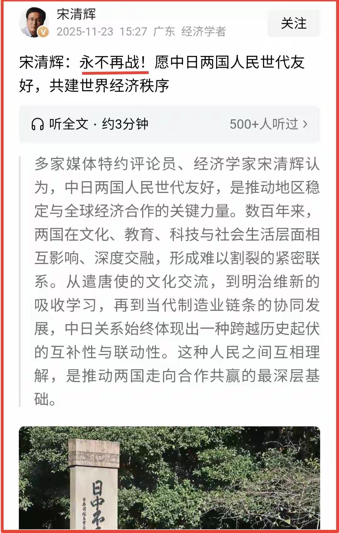 多名旅日中国公民在日本遭到无端辱骂和殴打。所以像宋清辉这样在网上呼吁中日友好的人,良心和脸不会痛吗? 两个国家之间的友好从来不是单方面的,需要双方共同的努力。 我们中国一直都热爱和平,是日本人挑衅在先,打破了两国之间的现状。他们应该为当前的局势承担所有的后果和责任。