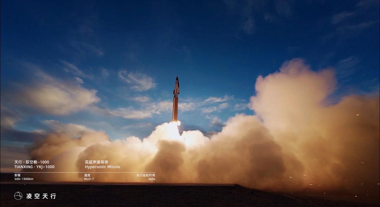 该公司在其宣传片中演示了导弹饱和式打击的场景。视频内容显示,“驭空戟-1000”以5—7马赫飞行速度,对预定目标实施饱和攻击,并且可做到自动识别目标、自动躲避危险。