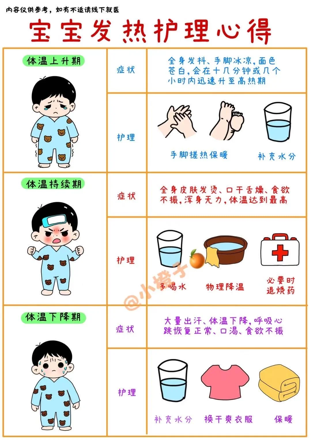 😷这段时间也慢慢摸出了宝宝发热的规律,整理成护理心得分享给大家,新手妈妈们可以参考下: