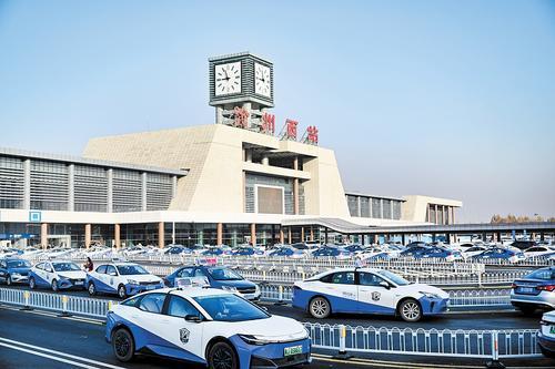11月26日,出租车在沧州西站站前广场排队等候乘客。本报记者张昊摄