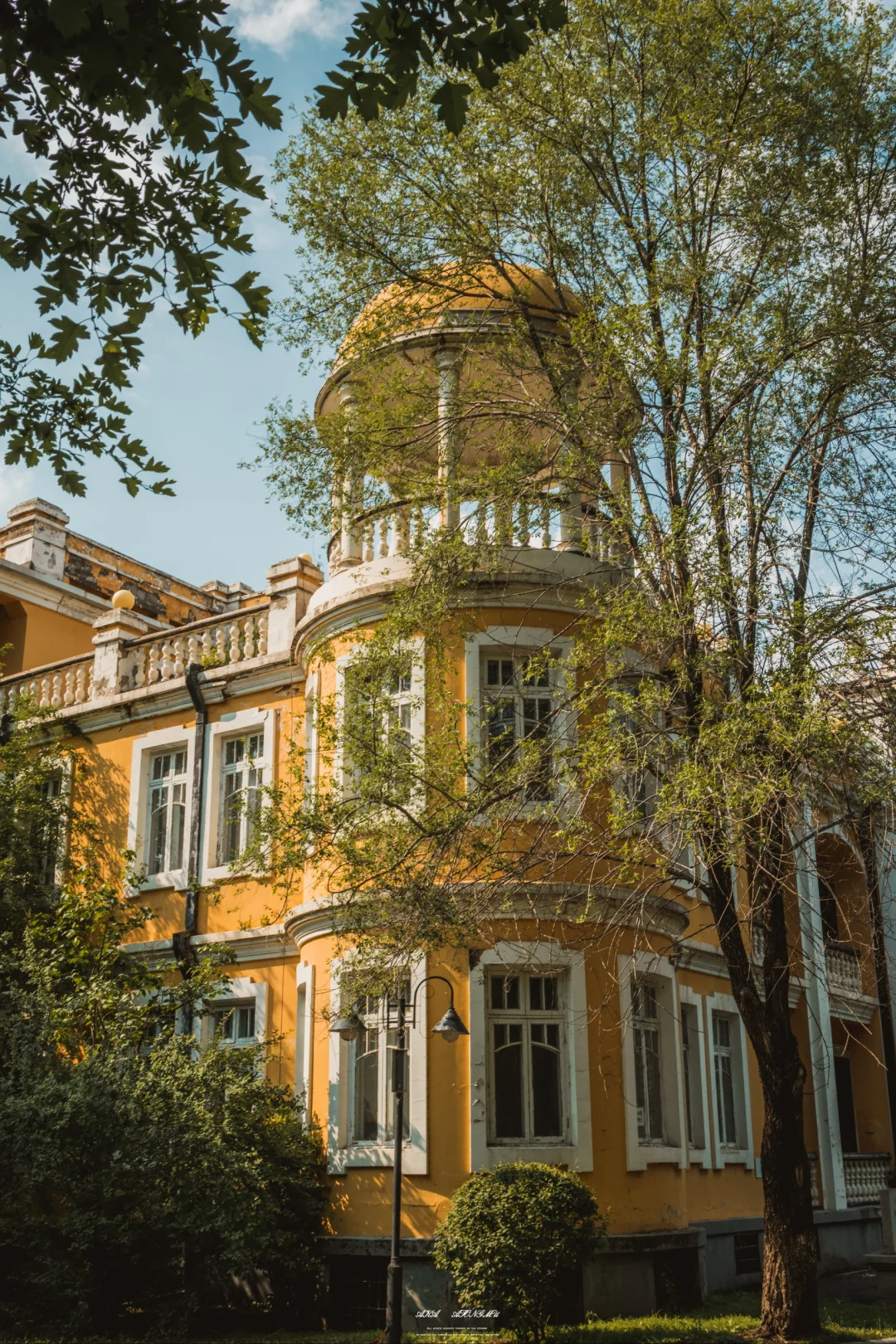 🏚️西关小黄楼的官方称呼实为“张作相官邸”。该建筑1927年开建,1929年竣工,采用德国设计图纸,部分材料也由德国进口。楼顶西南角建有一座八柱砖石结构的圆亭,具有浓郁的欧式建筑风格。是民国年间吉林城内典型的“折中主义”建筑 🌟提起小黄楼也就不得不提起一个人——张作相。 张作相,字辅忱,张作相出生于锦州义县,而张作霖来自奉天海城县。两人因机缘巧合相识后,觉得很有缘分,于是结拜为兄弟。张作相后来成为张作霖的得力助手和军师,1925年,张作相代任吉林军务督办兼吉林省长,可以说在主政吉林8年时间里,给吉林留下了不少受用至今的设施 🌈🌈另外,西关宾馆内还有一棵植于宋代的千年“船厂榆魁”,吉林市旧称船厂,而老榆树是树中魁首,因此得名,如今仍旧丰茂参天,人不过百年,而树存千年,不知这棵老树见证了多少历史呢