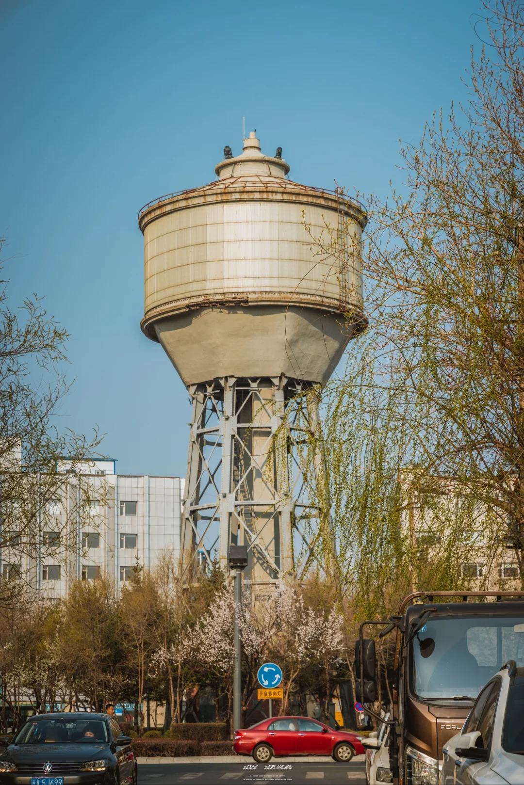 🏭近代的长春是全国通自来水较早的城市。很多老长春人对上世纪初长春的水塔有深刻的印象,他们将其称为“水楼子”。老长春历史上曾有7座水塔,现在尚存3座,4座已经消失,今天就来看看长春站西广场的两座老水塔 🏘️满铁西广场水塔,建于1912年,并与1913年开始投入使用。该水塔高三十米,塔顶为钢筋混凝土结构的储水池,塔身为八立柱桁架钢结构组成,牢固异常。在塔底建有泵房,塔边建有砖混的红砖小二楼。此水塔是满铁在长春建设的第一个供水塔,目的就是向满铁附属地供应自来水,也是从这个时候开始,长春进入使用自来水阶段。 🏚️到了1932年3月,为满足需要,由满铁地方部工事课设计,于1933年11月,在此塔南侧200米的地方又建起了一座水塔,名为新京敷岛通水塔,塔高38.15米,总容量1000立方米。这座新水塔,通体均为钢筋混凝土浇筑,十二根立柱支撑 🏬到了解放后,这两座水塔都由铁路部门接收,主要为为蒸汽机车和职工住宅供水之用。时至今日,西广场水塔已经停用了多年,前些年变成了巨大广告的搭载体,俨然成为广告架。目前,市政府本着“修旧如旧”的原则进行了全面整修,并加装了装饰灯,昔日的地标性建筑回复了往日的风采。而敷岛通水塔仍在使用,主要是为列车提供饮用水,兼做周边居民的供水用。
