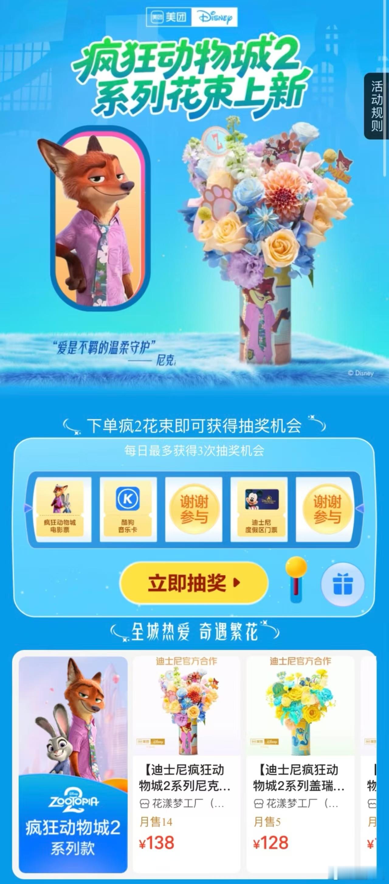 疯狂动物城2系列花束 谁被朱迪的职场追梦魂戳中了!迪士尼《疯狂动物城2》系列花束把朱迪“大城坚守梦想”焊在花语里~高压力下也不丢初心,像朱迪一样无畏向前的你,本就该被鲜花嘉奖!带上这束“勇气之花”去看《疯狂动物城2》,和兔子警官一起续写热血,影院打卡超吸睛~